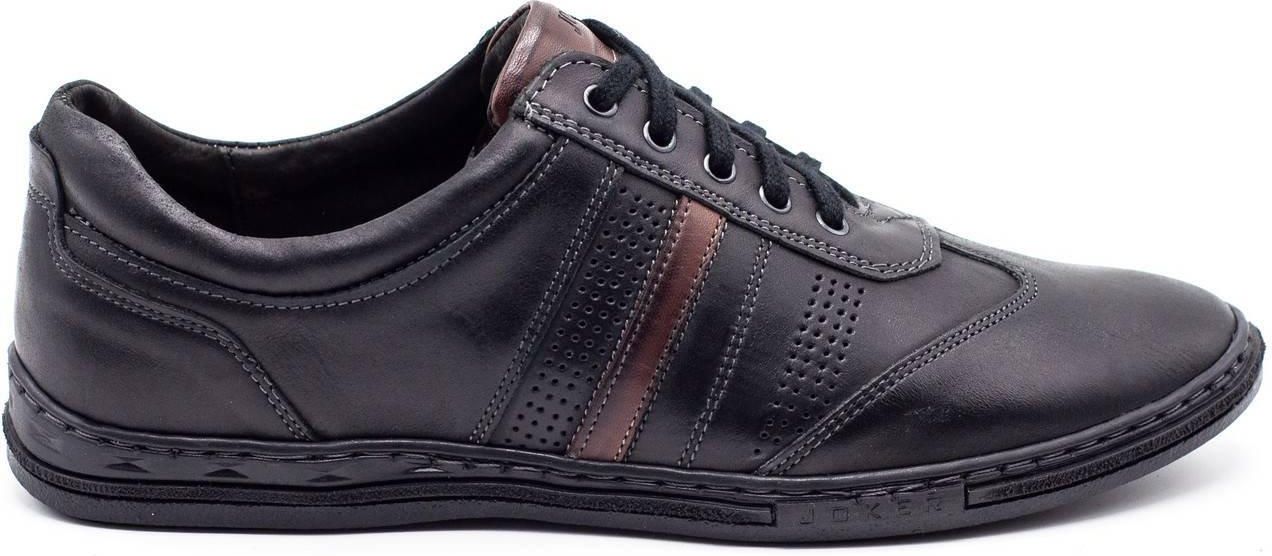 BUTY MĘSKIE POLSKIE SKÓRZANE JOKER 521 CZARNY Kolor: Czarny Materiał wewnętrzny: Skóra naturalna Materiał zewnętrzny: Skóra naturalna Podeszwa: Wysokogatunkowe tworzywo Zapięcie: Sznurowane Sposób wykonania: Szyte, Klejone Typ: Casual Konserwacja: Pasty do skór licowych, Tłuszcze do konserwacji typu Mink Oil Tęgość: G 1/2 Tabela rozmiarów: Rozmiar 40 - wkładka: 26 cm Rozmiar 41 - wkładka: 26,5 cm Rozmiar 42 - wkładka: 27,5 cm Rozmiar 43 - wkładka: 28 cm Rozmiar 44 - wkładka: 28,5 cm Rozmiar 45 - wkładka: 29 cm