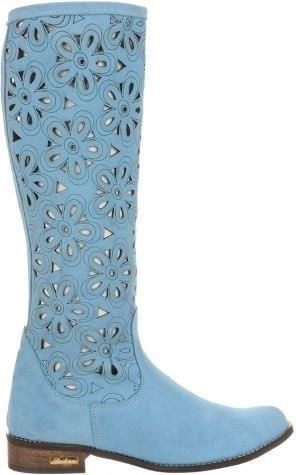 Damskie kozaki ażurowe niebieskie - Niebieski Terespol
