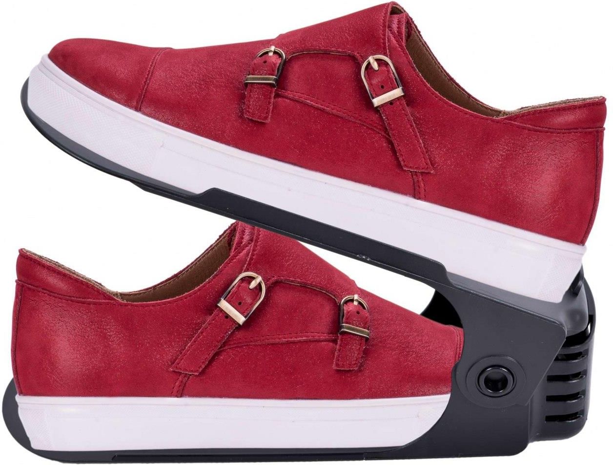 10x Organizer Uchwyt Na Buty Stojak Półka Do Szafy Szafki Garderoby Czarny Komplet 10 sztuk 4 stopniowa regulacja Podwójna platforma Do wszystkich rodzajów obuwia Komplet Regulowanych Uchwytów Na Buty Czarny 10szt - Oszczędzaj Miejsce I Organizuj Swoje Obuwie Kolor: Czarny Szukasz sposobu na zorganizowanie swojej szafy i zyskanie więcej miejsca na buty? Regulowane uchwyty na obuwie to idealne rozwiązanie, które pozwoli Ci zaoszczędzić aż 50% miejsca w garderobie. Dzięki nim z łatwością uporządkujesz każdy rodzaj obuwia – od sportowego po eleganckie szpilki. Uchwyt pozwala układać buty jeden na drugim, zapobiegając ich brudzeniu się i tworząc więcej przestrzeni do przechowywania. Jeśli masz problem z chaosem w szafie, ten produkt pomoże Ci skutecznie go rozwiązać, a regulacja wysokości zapewnia elastyczność w dopasowaniu do różnych modeli butów. Komplet 10 sztuk Do wszystkich rodzajów obuwia Powierzchnia antypoślizgowa Podwójna platforma Praktyczny uchwyt oraz ogranicznik 4 stopniowa regulacja: 8, 11, 15, 18 cm Oszczędność miejsca o 50% dzięki układaniu butów na sobie Zajmuje mało miejsca podczas przechowywania Wymiary Długość całkowita: 25 cm Szerokość całkowita: 9,7 cm Wysokość całkowita: 18 cm 4 STOPNIOWA REGULACJA! Poziom 1 - 8 cm Poziom 2 - 11 cm Poziom 3 - 15 cm Poziom 4 - 18 cm Komplet 10 sztuk Zestaw zawiera aż 10 uchwytów, co ułatwi przechowywanie obuwia. Do wszystkich rodzajów obuwia Uchwyt pasuje do każdego rodzaju obuwia, niezależnie od jego kształtu i wielkości. Powierzchnia antypoślizgowa Stabilność butów jest zapewniona dzięki antypoślizgowym elementom, co zapobiega ich zsuwaniu się. Podwójna platforma Dzięki dwupoziomowemu układaniu butów zyskasz dodatkową przestrzeń w szafie. Praktyczny uchwyt oraz ogranicznik Dodatkowy uchwyt ułatwia przenoszenie i organizację. 4 stopniowa regulacja: 8, 11, 15, 18 cm Czterostopniowa regulacja (8, 11, 15, 18 cm) pozwala dostosować uchwyty do różnych rodzajów obuwia, od niskich butów sportowych po wysokie szpilki. Oszczędność miejsca o 50% dzięki układaniu butów na sobie Dzięki dwupoziomowemu układaniu butów zyskasz dodatkową przestrzeń w szafie. Zajmuje mało miejsca podczas przechowywania Po złożeniu uchwyty zajmują bardzo mało miejsca, co jest idealne dla małych przestrzeni. Pytania i odpowiedzi (Q&A) Czy uchwyty pasują do wszystkich rodzajów butów? Tak, uchwyty są uniwersalne i pasują do każdego rodzaju obuwia, od sportowych butów po eleganckie szpilki czy buty dziecięce. Czy uchwyty są regulowane? Tak, uchwyty posiadają czterostopniową regulację wysokości (8, 11, 15, 18 cm), dzięki czemu łatwo dopasujesz je do różnych modeli butów. Jakie są korzyści z używania tych uchwytów? Przede wszystkim oszczędność miejsca w szafie o 50%, organizacja obuwia oraz ochrona butów przed zabrudzeniami i odkształceniami. Czy uchwyty są trwałe? Tak, uchwyty wykonane są z wytrzymałego i elastycznego tworzywa sztucznego, które zapewnia ich długą żywotność. *- Kolory przedstawione w ofercie należy traktować poglądowo - mogą odbiegać od rzeczywistych ze względu na różne ustawienia monitorów oraz proces obróbki zdjęć. *- Uwaga! Rzeczywiste wymiary mogą się różnić od tych podanych w ofercie. Tolerancja błędów może wynosić +/- 5%. [kod:5BF5673CD84BF] W.M.