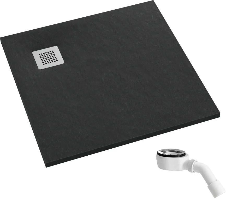 Brodzik kwadratowy Schedpol Kalait 80x80x3,5 cm czarny kamień kompozyt 3.3201/c/st-m2 to brodzik w czarnym kolorze, który dedykowany jest między innymi aranżacjom nowoczesnym, loft oraz minimalistycznym. Powyższy model wyróżnia się strukturą imitującą kamień, dzięki której zyskuje niesztampowy wygląd. Produkt występuje w komplecie z metalową maskownicą oraz syfonem szybko przepływowym. Wymiary prezentowanego brodzika Schedpol z kolekcji Kalait sięgają 80 cm szerokości, 80 cm głębokości oraz 3.5 cm wysokości. Wykonany z kompozytu, charakteryzuje się szczególną odpornością na pęknięcia, odbarwienia i odkształcenia. Solidna i wytrzymała na nacisk konstrukcja nie ulega uszkodzeniom pod wpływem uderzenia. Ponadto wzbogacona o hydroszczelną warstwę spodnią, zapobiega rozwojowi pleśni.