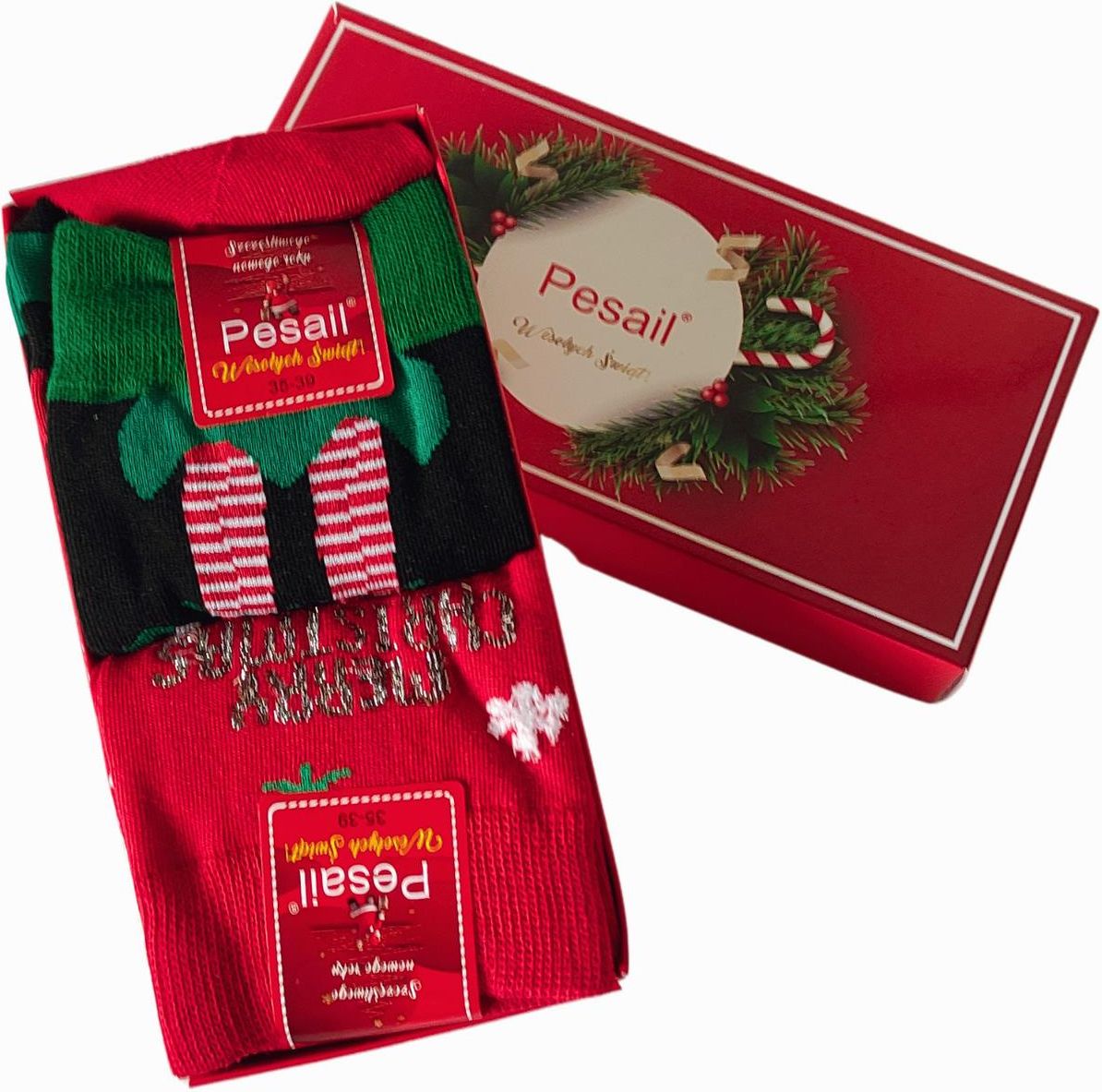 Świąteczne skarpety z motywem świątecznym to idealny wybór, aby wprowadzić do garderoby odrobinę radości i sezonowego klimatu. Te kolorowe skarpety ozdobione są świątecznymi detalami, takimi jak renifery, prezenty i cukrowe laski, które przywołują ciepłą, zimową atmosferę. Dzięki wysokiej jakości materiałom, zapewniają komfort przez cały dzień i są doskonałym dodatkiem na świąteczne spotkania lub jako wyjątkowy prezent pod choinkę. Zalety skarpet Świąteczny design, który dodaje uroku i wyjątkowości każdej stylizacji. Wysoka jakość wykonania, gwarantująca wygodę i trwałość. Idealny pomysł na prezent, zapakowane w pudełko. Podaruj sobie lub bliskim odrobinę świątecznej magii dzięki tym uroczo zdobionym skarpetom! Miks wzorów wysyłanych losowo! Skład: 95% bawełna 5% Elastan