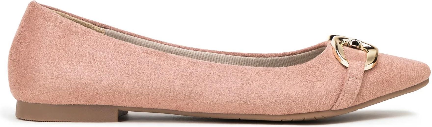 Damskie buty na płaskim obcasie. Zgrabne balerinki to must have w szafie każdej stylowej kobiety. Wykonane zostały z przyjemnego w dotyku tworzywa przypominającego zamsz, które idealnie dopasuje się do Twojej stopy. Miękka, wyprofilowana wkładka i niewysoki obcas ułatwią komfortowe chodzenie przez wiele godzin. Błyszcząca, szeroka klamra urozmaici nawet najprostszą stylizację, a nosek w szpic wysmukli stopę. Noś je do ulubionej małej czarnej lub połącz z dżinsami i skórzaną ramoneską – w każdej sytuacji będziesz wyglądała szykownie. Baleriny z ekozamszu z klamrą to ponadczasowy dodatek zarówno na co dzień do pracy, jak i do teatru lub na elegancką kolację.Nasza rada: to świetne buty na co dzień. tworzywo sztuczne; wkładka i wyściółka z tworzywa sztucznego; podeszwa z tworzywa sztucznego; nosek w szpic; ozdobna klamra. materiał syntetyczny materiał syntetyczny materiał syntetyczny