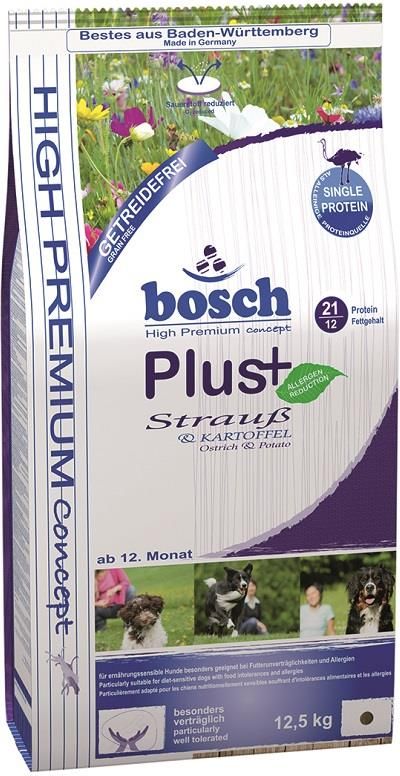 Karma bosch PLUS+ Struś jest szczególnie odpowiednia dla wrażliwych pod względem żywieniowym psów cierpiących na nietolerancję pokarmu i alergie. Świeży struś jako jedyne źródło białka zwierzęcego i dobrze przyswajalne ziemniaki zapewniają delikatne, naturalne i bezzbożowe żywienie młodego psa. Tym samym bosch PLUS+ Struś wyjątkowo nadaje się dla wrażliwych psów z nietolerancją na zboża. Wyjątkowy ze względu na łatwą przyswajalność i łatwe trawienie