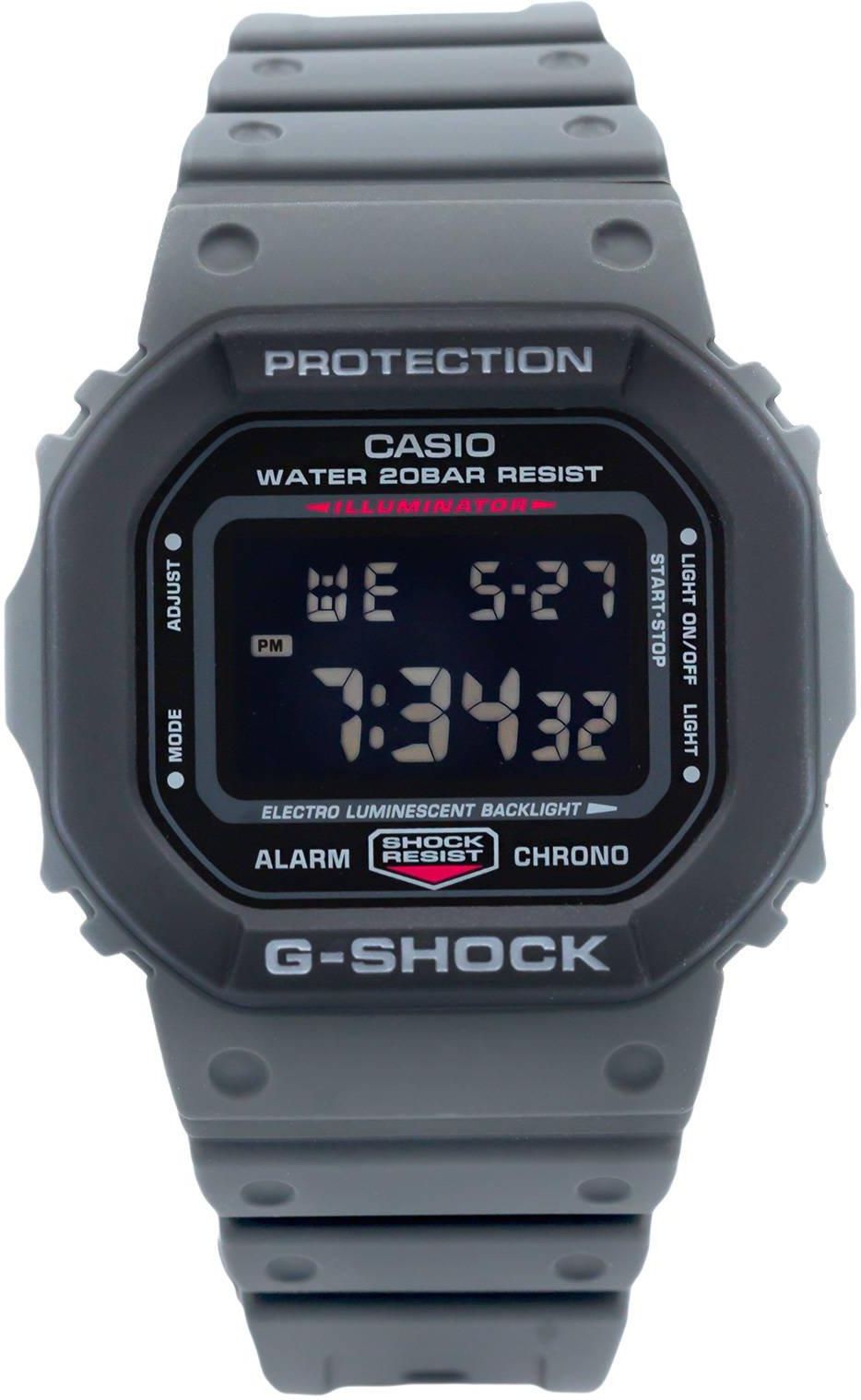 Zegarki Casio to cały wachlarz niezwykle różnorodnych produktów, przeznaczonych dla wielu grup klientów: kobiet, mężczyzn, sportowców i ludzi biznesu. Produkowane są one przy użyciu nowoczesnych technologii. Tym, co przyciąga uwagę, jest fakt, że zegarki Casio posiadają cały szereg bardzo zaawansowanych funkcji elektronicznych. Szczególną popularnością u klientów cieszą się modele odporne na wstrząsy, zsynchronizowane z zegarem atomowym, wyposażone w chronografy i funkcje do pomiarów w terenie. Zegarek męski Casio G-shock DW-5610SU-8ER posiada mechanizm kwarcowy zasilany baterią. Zarówno koperta jak i pasek wykonane z tworzywa w kolorze szarym. Czarną tarczę pokrywa szkiełko mineralne. Model posiada funkcje przydatne zarówno na co dzień jak i do aktywnego wypoczynku. System wstrząsoodporny zabezpiecza zegarek przeciwko wstrząsom i uderzeniom a wodoszczelność na poziomie 20 ATM pozwala na swobodne pływanie i nurkowanie. Można w nim ustawić 4 alarmy - pierwszy - alarm dzienny dzwoni o tej samej porze każdego dnia, drugi - ustawiamy na konkretną datę aby przypomnieć np.: o urodzinach, trzeci alarm miesięczny dzwoni co miesiąc tego samego dnia oraz czwarty ustawiany na każdy dzień danego miesiąca.  Dodatkowo umożliwia korzystanie ze stopera odmierzające czas do 24 godzin z dokładnością do 1/100 sekundy a także timera odliczającego czas wstecz do 24 godzin z dokładnością 1/1 sekundy, z auto-powtarzaniem i możliwością zaprogramowania kilku czasów odliczania następujących kolejno po sobie. Dodatkowym atutem jest automatyczny kalendarz, który sam dostosowuje datę w przypadku krótszych lub dłuższych miesięcy. PŁEĆ - Męski PRODUCENT - Casio POCHODZENIE MARKI - Japonia WODOSZCZELNOŚĆ - 20 ATM (200m) MECHANIZM - Kwarcowy RODZAJ KOPERTY - Tworzywo sztuczne KSZTAŁT KOPERTY - Kwadratowa KOLOR KOPERTY - Szary RODZAJ SZKIEŁKA - Mineralne KOLOR TARCZY - Czarny TYP PASKA - Pasek, Tworzywo sztuczne KOLOR PASKA - Szary