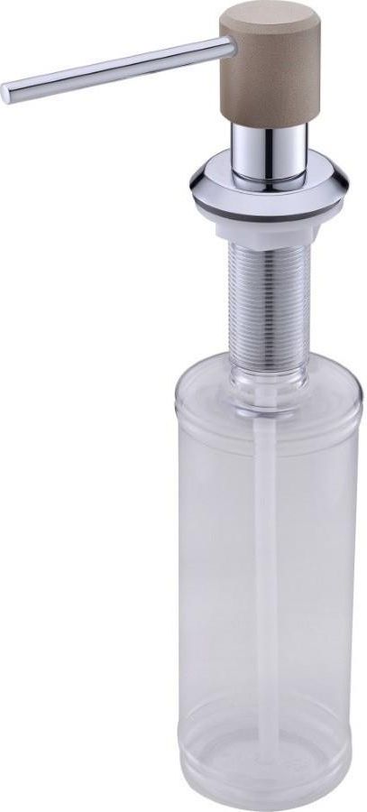 Dozownik do napełniania od góry (nie trzeba odkręcać butelki). Materiał głowicy dozownika w chromowanym wykończeniu. Rozeta maskująca 84 mm, rozeta maskująca 48 mm. Maksymalna grubość blatu 40 mm. Otwór montażowy do dozownika 30 – 35 mm. Pojemnik na ciecz: tworzywo sztuczne 350 ml. Całkowita wysokość dozownika: 270 mm.
