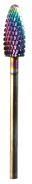 Frez stożek z tęczową powłoką FRT500-4. Wykonany ze stali. Frez gwarantuje najwyższą jakość pracy przy paznokciach akrylowych i żelowych. Materiał, z którego został wykonany, jest wysoce odporny, dzięki czemu frez świetnie nadaje się do obróbki i usuwania twardej masy żelowej i akrylowej, nie przegrzewając przy tym płytki paznokcia. Sam frez nie rdzewieje i