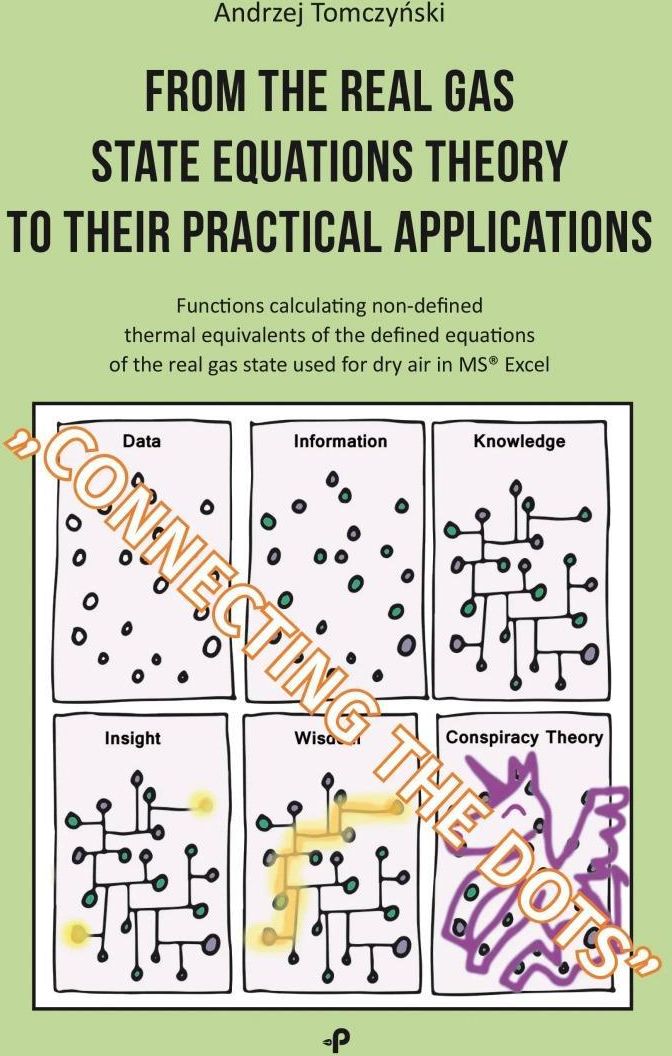 The cover features a drawing composed of six separate images, which depict potential stages of human thinking development. In Western culture, this process is called “connecting the dots,” and, in short, according to the author, it can be described as follows: The image titled "Data" refers to the fact that each of us has some information stored in our minds. We are also constantly learning new things, so let’s call these new pieces of information “data.” People treat this data differently or make various uses of it. The image titled "Information" shows that some of this data is connected by people, as they believe doing so broadens their understanding or knowledge about something—meaning they have a better grasp of a particular topic. The "Knowledge" image pertains to a smaller group of people who believe they now have a better understanding of certain subjects. They start connecting this knowledge intuitively, thinking that doing so gives them better insight or perspective on other things. The "Insight" image involves an even smaller number of people—those who don’t stop at just connecting data or knowledge. Instead, they try to figure out what theory (“wisdom”) is behind it, what philosophy or ideology it relates to, and so on. The "Wisdom" image is about a few individuals from that group who have determined that they can add value or new insights to the theories (“wisdom”), philosophies, or ideologies they’ve identified. They then share this with others so they can learn and evaluate it. The "Conspiracy Theory" image shows that there are also people who intentionally do not try to figure out what theory (“wisdom”) or related philosophy or ideology is behind the data. Instead, they believe that certain data (information) is spread deliberately to shape a specific “image” or to contribute to the creation of “conspiracy theories.” These individuals might claim that these theories are their own opinions or judgments. It’s also important to note that when someone makes use of data (information)—that is, “connects the dots”—the outcome can vary depending on how much effort they put into it. Some people put in no effort at all. Therefore, everyone can assess themselves in this process—how they “connect the dots”—which indicates self-awareness. Od teorii równań stanu gazu rzeczywistego do ich praktycznych zastosowań Książka autorstwa Andrzeja Tomczyńskiego to fascynująca podróż przez świat równań stanu gazu rzeczywistego, łącząca teorię z praktycznymi zastosowaniami. Autor w przystępny sposób przedstawia złożone zagadnienia, które są kluczowe dla zrozumienia zachowań gazów w różnych warunkach. Dla kogo jest ta książka? Studenci kierunków inżynieryjnych i nauk ścisłych Profesjonaliści pracujący w dziedzinie inżynierii chemicznej i mechanicznej Osoby zainteresowane fizyką i chemią gazów Nauczyciele i wykładowcy poszukujący materiałów do nauczania Co zyskasz dzięki tej publikacji? Praktyczne zrozumienie równań stanu gazu rzeczywistego Umiejętność zastosowania teorii w rzeczywistych problemach inżynieryjnych Wgląd w procesy myślenia i rozwijania wiedzy w kontekście nauk ścisłych Inspirację do dalszego zgłębiania tematyki gazów i ich zastosowań Kluczowe tematy i obszary Równania stanu gazu rzeczywistego Teoria i praktyka w inżynierii chemicznej Rozwój myślenia i przetwarzanie informacji Przykłady zastosowań w przemyśle O Autorze Andrzej Tomczyński to doświadczony specjalista w dziedzinie nauk ścisłych, który łączy teorię z praktyką. Jego prace koncentrują się na zastosowaniach równań stanu gazu w różnych dziedzinach inżynierii. O Wydawcy Wydawnictwo Poligraf to renomowany wydawca specjalizujący się w publikacjach z zakresu nauk ścisłych. Dzięki wieloletniemu doświadczeniu, oferuje książki, które są zarówno merytoryczne, jak i przystępne dla czytelników. Producent/osoba odpowiedzialna za bezpieczeństwo produktuWydawnictwo Poligraf sp. z o.o.Młyńska 3855-093 Brzezia Łąkabok@wydawnictwopoligraf.pl713153913
