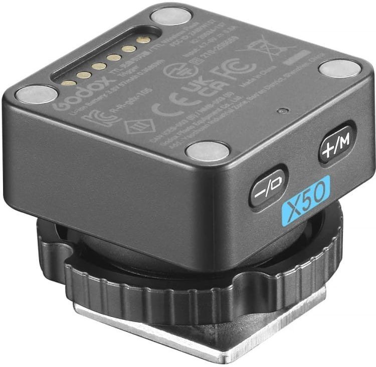 Godox X5 Wireless dla iT32 do Olympus i Panasonic Godox X5O to magnetyczny adapter stopki przeznaczony do lampy Godox iT32. Zapewnia kompatybilność z aparatami Olympus oraz umożliwia montaż lampy na aparacie i bezprzewodowe wyzwalanie błysku w systemie Godox X 2.4 GHz. Moduł mocowany jest magnetycznie do iT32 i blokowany w sankach aparatu za pomocą pierścienia. Zasilany wbudowanym akumulatorem ładowanym przez lampę. Montaż i blokada - Godox X5 Wireless dla iT32 do Olympus i Panasonic Godox X5O to magnetyczna, wymienna stopka do lampy Godox iT32, zapewniająca połączenie z gorącą stopką oraz funkcję wyzwalania błysku. Wystarczy wyrównać X5O z dolną częścią iT32 – magnes automatycznie „wciąga” moduł i stabilnie go mocuje. Następnie, aby zamontować zestaw na aparacie, ustaw X5O w sankach i zablokuj połączenie pierścieniem blokującym, aż do wyczuwalnego zatrzaśnięcia. X5O współpracuje z lampą iT32 mini (sprzedawaną oddzielnie) i jest kompatybilny z następującymi modelami aparatów Olympus i Panasonic: E-M1, PEN-F, E-M10 II, E-PL8, E-P5, E-M10 III, GH4, LX100, DMC-GF1, DMC-G85, DMC-GX85, DMC-LX100, DMC-FZ2500GK oraz S1. Sterowanie X W połączeniu z lampą iT32 (ustawienie iT32+X5) moduł X5O może działać jako jednostka sterująca i wyzwalać inne lampy Godox w systemie radiowym Godox Wireless X 2.4 GHz. Umożliwia to budowę prostych i rozbudowanych zestawów wieloświetlnych oraz zdalną pracę z kompatybilnymi odbiornikami i lampami systemu Godox X. X5O może sterować m.in. urządzeniami takimi jak: AD100Pro II, AD200Pro II, AD600Pro II, AD600BM II, iT30Pro, V100, V480 oraz Lux Master. Godox X5 Wireless dla iT32 do Olympus i Panasonic - Zasilanie i LED X5O nie posiada osobnego włącznika – stan pracy sygnalizowany jest wskaźnikami kolorystycznymi. Po podłączeniu do iT32 poziom baterii modułu można sprawdzić w menu lampy. Wbudowany akumulator litowy 3,8V / 100mAh ładuje się po podłączeniu do iT32 (pełne ładowanie ok. 3 godz.), a czas rozładowania od pełnego stanu wynosi ok. 16 godzin. Zestaw zawiera: stopka Godox X5O oryginalne opakowanie