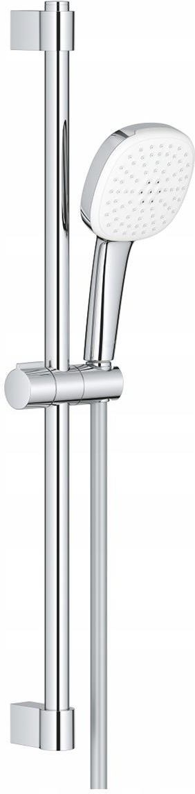 Grohe Tempesta Cube 26748003 Zestaw prysznicowy Grohe Tempesta Cube 26748003 to idealne rozwiązanie dla osób, które cenią sobie wysoką jakość, funkcjonalność oraz estetykę w codziennej higienie. Dzięki innowacyjnym technologiom i starannemu wykonaniu, ten zestaw prysznicowy zapewnia komfort i satysfakcję podczas każdej kąpieli, łącząc w sobie nowoczesny design z praktycznymi rozwiązaniami. Wymiary i regulacja Zestaw prysznicowy charakteryzuje się przemyślanymi wymiarami, które wpływają na komfort jego użytkowania. Drążek prysznicowy ma długość 600 mm, co ułatwia dostosowanie do wysokości użytkownika. Regulowany uchwyt słuchawki prysznicowej oraz ruchomy, obrotowy uchwyt pozwalają na wygodne korzystanie z prysznica w różnych pozycjach. Dodatkowo, możliwość regulacji wysokości górnego mocowania sprawia, że instalacja zestawu jest szybka i intuicyjna. Materiał wykonania Wysoka jakość materiałów użytych do produkcji zestawu ma kluczowe znaczenie dla jego trwałości. Zestaw prysznicowy wykonany jest z odpornych na korozję surowców, takich jak stal nierdzewna i mosiądz, co zapewnia długotrwałe użytkowanie. Chromowana powierzchnia, dzięki systemowi GROHE Long-Life, nie tylko prezentuje się elegancko, ale także ułatwia utrzymanie czystości. Rodzaj montażu i kompatybilność Zestaw prysznicowy jest przeznaczony do montażu natynkowego, co sprawia, że jego instalacja jest prosta i szybka. Dzięki uniwersalnemu przyłączu, idealnie pasuje do większości standardowych węży prysznicowych, co czyni go doskonałym rozwiązaniem dla osób pragnących szybko zmodernizować swoje wyposażenie łazienkowe. Funkcje dodatkowe Zestaw prysznicowy oferuje szereg innowacyjnych funkcji, które wpływają na komfort użytkowania: GROHE SmartSwitch – łatwa zmiana strumienia wody, GROHE Water Saving – technologia oszczędzania wody, GROHE DreamSpray – idealny strumień wody, SpeedClean – silikonowe dysze ułatwiające czyszczenie, Inner WaterGuide – ochrona przed nagrzewaniem powierzchni, ShockProof – silikonowy pierścień chroniący słuchawkę prysznicową w razie upadku. Rodzaje strumienia wody Zestaw dostarcza dwóch rodzajów strumienia wody, które pozwalają na dostosowanie ich do indywidualnych preferencji użytkownika: Rain – delikatny, naśladujący deszcz. Jet – intensywny, idealny do oczyszczania ciała. Kluczowe cechy zestawu prysznicowego Zestaw prysznicowy Grohe Tempesta Cube 26748003 wyróżnia się następującymi cechami: Materiał: stal nierdzewna, mosiądz, chrom, Funkcje: GROHE SmartSwitch, Water Saving, DreamSpray, Rodzaje strumienia: Rain, Jet, Montaż: natynkowy, uniwersalne przyłącze. Typ zestawu prysznicowego Zestaw Grohe Tempesta Cube to prysznic z rączką oraz drążkiem, co czyni go niezwykle funkcjonalnym. Jego nowoczesne rozwiązania oraz staranne wykonanie sprawiają, że korzystanie z prysznica staje się przyjemnym rytuałem.