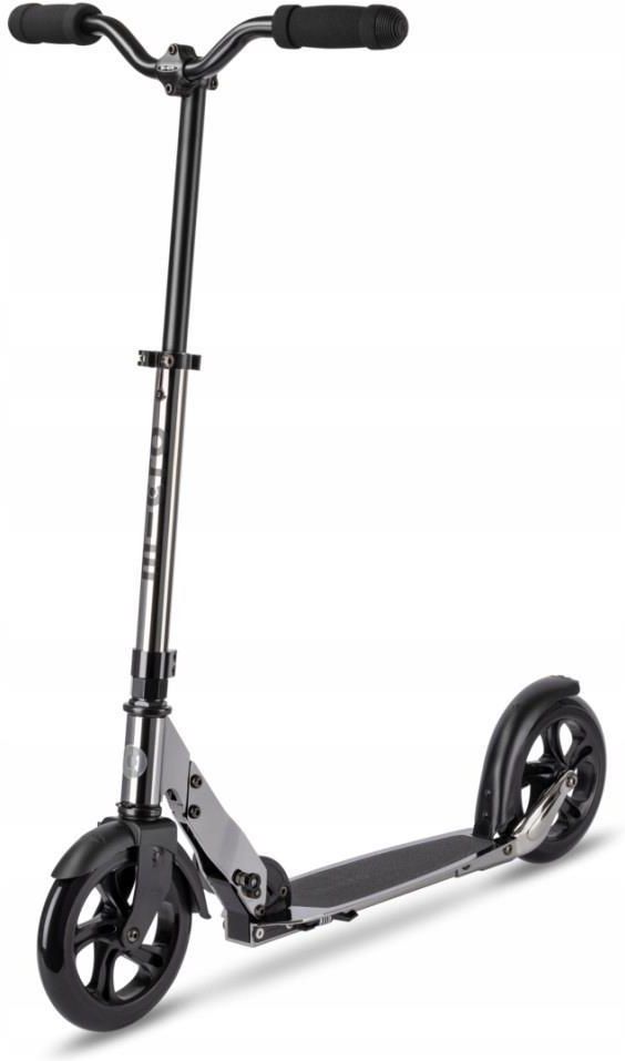 Hulajnoga Micro Classic Neochrome Black Wygodna i praktyczna Nowoczesna hulajnoga Micro Classic Neochrome Black to idealne rozwiązanie dla osób ceniących sobie szybkość i wygodę. Dzięki aluminiowej konstrukcji oraz dużym kołom o średnicy 200 mm, podróżowanie staje się prawdziwą przyjemnością. Maksymalne obciążenie do 100 kg gwarantuje, że hulajnoga jest odpowiednia zarówno dla dorosłych, jak i dzieci. Bezpieczna i komfortowa Prosta w obsłudze i kompaktowa, hulajnoga Micro Classic umili każdy aktywny wypoczynek. Wygodny podest z antypoślizgowym wykończeniem zapewnia stabilne postawienie obu stóp, a niskie zawieszenie podestu pozwala na optymalną pozycję do jazdy bez obciążania kręgosłupa. Dodatkowo zastosowanie wysokiej jakości kół poliuretanowych gwarantuje trwałość i cichą jazdę. Wielofunkcyjna i przenośna Hulajnoga Micro Classic została zaprojektowana z myślą o aktywnych rodzinach. Regulowany drążek i składane rączki zapewniają komfort jazdy dla użytkowników o różnym wzroście, a duży hamulec przy tylnym kole pozwala na bezpieczne zatrzymanie. Składana nóżka ułatwia przenoszenie i przechowywanie hulajnogi, a prosty mechanizm składania zapewnia szybki dostęp do pojazdu w każdej chwili. Wyjątkowa i nowoczesna Micro Classic Neochrome Black to doskonałe połączenie szybkości, wygody i stylu. Zaprojektowana z myślą o użytkownikach miejskich, hulajnoga jest idealna do pokonywania dłuższych dystansów przy minimalnym wysiłku dzięki niskiemu zawieszeniu. Jej elegancki design nigdy nie wyjdzie z mody, a współpraca firmy Micro z ekspertami w trakcie projektowania zapewnia pełne bezpieczeństwo podczas użytkowania hulajnogi. Dlatego nie zwlekaj i odkryj radość z jazdy na hulajnodze! Hulajnoga Micro Classic Neochrome Black to: koła o średnicy 200mm koła wykonane z miękkiej wytrzymałej poliuretanowej gumy, zaopatrzone w trwałe i cicho pracujące łożyska nisko zawieszony szeroki podest o wymiarach 12 x 33 cm z warstwą antypoślizgową duży hamulec na tylnym kole kierownica w kształcie litery T, regulowana od 72cm do 103cm wygodne rączki na kierownicy z miękkiej gąbki składana nóżka by móc postawić hulajnogę mechanizm składania hulajnogi za pomocą przycisku niewielka waga: 4,95kg gwarancja 2 lata model: SA0242