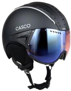 Kask narciarski renomowanej niemieckiej firmy CASCO. SP-2 Visor kask wykonany metodą Monocoque-Ultra (wzmocniony odlew stalowymi nitami) posiada wiele standardów bezpieczeństwa oraz certyfikaty takie jak TUV, ISO 9001. Kask zapinany jest klamrą umiejscowioną pod szyją. Rozmiar kasku dopasowuje się poprzez system disk fit VARIO, jest to wewnętrzny pierścień dopasowujący się do głowy użytkownika za równo pod względem obwodu jak i konta pochylenia w celu optymalnego dopasowania szyby do twarzy (nosa i policzków). Uszy kasku pokryte są miłym w dotyku sztucznym futerkiem. Przewiew kasku zapewnia system Klima-Automatik, liczne otwory i kanały wentylacyjne przez które wlatuje i wylatuje powietrze. Szyba fotochromatyczna mocowana jest za pomocą gumek, co jest istotne w chwili upadku, szyba "ucieka" do góry nie uszkadzając kręgów szyjnych, co się dzieje w modelach innych marek kasków z szybami. Szyba Photomatic posiada kategorię filtra 1-3. Dostępne jest też wersja tańsza z szybą Carbonic (kategoria filtra 2). Można dokupić szybę SNOWmask high contrast o kategorii filtra 1 (na mgliste warunki). Szyba może być używana z okularami korekcyjnymi. W zestawie z kaskiem jest twardy pokrowiec. Kask występuje w rozmiarze M (58-60cm.)
