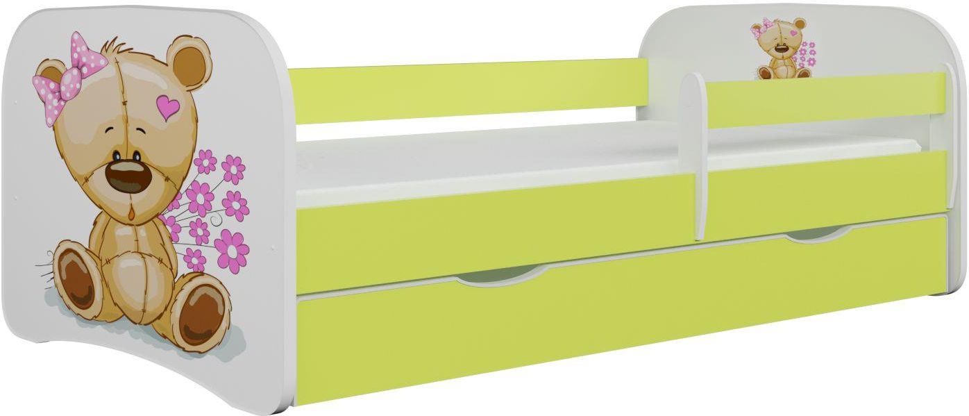 KocotKids Łóżko dla dziecka barierka babydreams miś z kwiatkami zielone Tłuszcz