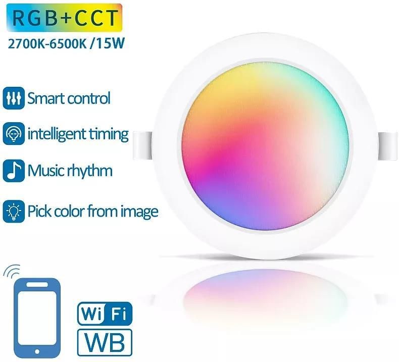 Lampa panel plafon sterowany z WI-FI okrągły podtynkowy 15w RGB+CCT Tłuszcz