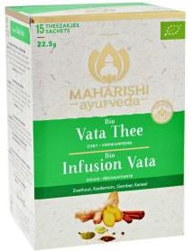 Herbata Vata Tea organiczna 15 torebek Maharishi Kod produktu: 6272 Maharishi Organiczna herbata Maharishi Vata ma pełny i słodki aromat bez dodatku cukru. Działa kojąco, rozgrzewająco i harmonizująco na doszę Vata. Herbata Vata jest szczególnie kojąca w czasie wymagającej pracy umysłowej i doskonale sprawdza się do picia wieczorem, w podróży a także w zimne i wietrzne dni. Składniki Lukrecja, cynamon, kardamon, imbir. Wszystkie składniki pochodzą z certyfikowanych upraw ekologicznych. Przygotowanie / użycie 1 saszetkę zalać ¼ litra wrzącej wody i zaparzać przez 5 do 7 minut. Możesz dodać cukier trzcinowy i / lub mleko lub cytrynę do smaku. Przechowywanie i użytkowanie: Przechowywać w suchym miejscu Pochodzenie: Rolnictwo spoza UE Producent: MAV Europe B.V. Holandia Certyfikowana ekologicznie Ajurwedyjska organiczna herbata ziołowa o posmaku korzennym.