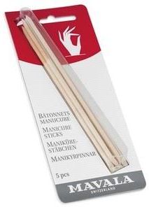 Mavala Switzerland Manicure Sticks drewniane patyczki do manicure 5 szt Drewniane patyczki do manicure firmy Mavala Switzerland Z jednej strony ścięte – do usuwania skórek zarastających płytkę paznokcia. Druga strona lekko zaostrzona – idealna do pielęgnacji boków paznokcia. Długość patyczków ok 15 cm. Opakowanie zawiera 5 szt.