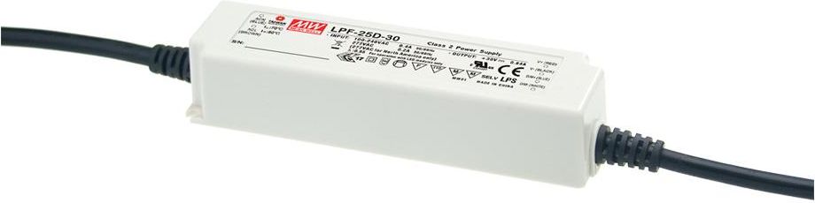 LPF-25D-42 Zasilacz LED 25W 42V 0.6A Przemysłowe zasilacze, przetwornice i ładowarki Firma Mean Well Enterprises Co., Ltd. jest jednym z wiodących producentów urządzeń zasilających na świecie. Posiada ona 5500 standardowych modeli w ofercie oraz bazuje na ponad 35 letnim doświadczeniu w projektowaniu, tworzeniu oraz zaopatrywaniu klientów w urządzenia zasilające. Firma Mean Well oferuje klientom kompleksowe oraz niezawodne rozwiązania do bardzo szerokiej gamy zastosowań. SHEMECK jest autoryzowanym subdystrybutorem produktów Mean Well w Polsce. Ze względu na pojawiające się wątpliwości w zakresie zasilaczy Mean Well, informujemy, że firma Mean Well produkuje zasilacze wyłącznie pod swoim znakiem handlowym, bez powiązania z innymi znakami towarowymi. Zasilacze do systemów oświetleniowych LED z funkcją ściemniania IP67 szeroki zakres napięcia zasilania: 90~305VAC, 127~431VDC szczelna plastikowa obudowa zgodna z normą IP67 (opcja w LPF-16(D)) stałe napięcie wyjściowe niezależnie od obciążenia zabezpieczenie przeciwzwarciowe, przeciążeniowe, nadnapięciowe, termiczne aktywny układ PFC odporność na przepięcia 300VAC przez 5 sekund izolacja klasy II funkcja ściemniania 3 w 1 (1~10VDC, PWM, rezystancja) chłodzenie przy otwartym obiegu powietrza temperatura pracy -40~+70°C zgodność z szeregiem norm i certyfikatów sprawność do 90% niskie koszty, wysoka niezawodność 3 lata gwarancji zasilacz LED 25W 42V 0.6A z funkcją ściemniania IP67 Dane techniczne: Model LPF-25D-42 Wyjście 42V, 0~0.6A Tolerancja +/-4% Zakłócenia 250mV Wydajność 85.5% Długość przewodów 300mm Wymiary 148x40x32mm