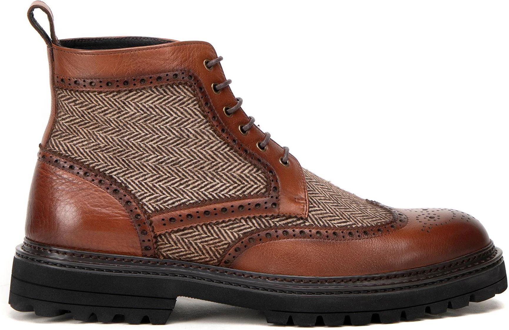 Męskie trzewiki wizytowe Kod produktu: 99-M-518-5-42 Męskie buty brogsy na traperowej podeszwie Skórzane trzewiki wizytowe z materiałowymi wstawkami to połączenie klasycznego stylu z nowoczesnym wykończeniem. Wykonane z najwyższej jakości skóry naturalnej oraz materiałów tekstylnych, te buty będą idealnym wyborem dla mężczyzn ceniących elegancję i komfort. Dla kogo? Absolutny must-have dla mężczyzn, którzy cenią klasyczny styl w nowoczesnym wydaniu. Sprawdzą się zarówno w codziennych, jak i bardziej formalnych stylizacjach, dodając każdemu outfitowi szczyptę elegancji i wyrafinowania. Nasza rada: Trzewiki to buty dające możliwość wielu stylizacji . Noszone z jeansami, koszulą i marynarką, tworzą stylowy, ale niezobowiązujący look. Idealne również do chinosów i swetra, nadają się na spotkania biznesowe oraz wyjścia ze znajomymi. W połączeniu z garniturem dodają klasy i elegancji, sprawiając, że każda formalna okazja nabiera wyjątkowego charakteru. Kluczowe cechy: Buty zostały wykonane z kombinacji skóry naturalnej oraz wytrzymałego materiału tekstylnego, które zapewniają trwałość i stylowy wygląd .Charakterystyczne zdobienia typu brogue dodają butom elegancji i unikalnego charakteru. Wytrzymałość: Wzmocnienia w obrębie pięty i noska sprawiają, że w tych butach przechodzisz wiele sezonów. Traperowa podeszwa : Solidna i przyczepna podeszwa zapewnia komfort noszenia i doskonałą stabilność, niezależnie od warunków pogodowych. Komfort noszenia : Miękka, skórzana wkładka oraz solidne wiązanie gwarantują wygodę i odpowiednie wsparcie dla stopy przez cały dzień.Te męskie buty na traperowej podeszwie staną się niezastąpionym elementem Twojej garderoby, łącząc elegancję z wygodą na najwyższym poziomie! materiał: skóra naturalna przybliżona wysokość obcasa (cm): 3 przybliżona wysokość cholewki (cm): 13 materiał dodatkowy: materiał włókienniczy, materiał syntetyczny typ obuwia: trzewiki kolekcja: Obuwie kształt noska: migdałowy rodzaj obcasa: platforma materiał wkładki: skóra zapięcie: sznurowane ocieplenie: nie rodzaj skóry: matowa sezon: na jesień, na zimę, na wiosnę okazja: do pracy styl: eleganckie waga buta (g): 420