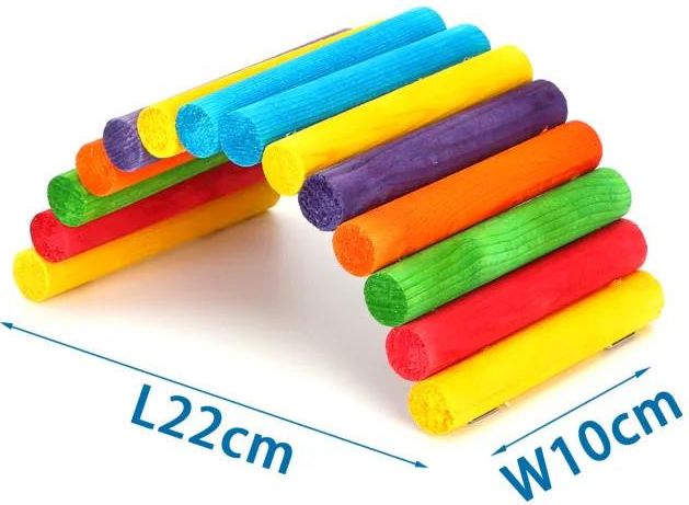 Drewniany kolorowy mostek dla gryzoni Kolorowy mostek wykonany z naturalnego drewna, idealny do klatek dla gryzoni i ptaków. Mostek ma długość 22 cm po rozłożeniu oraz szerokość 10 cm, co czyni go praktycznym i atrakcyjnym elementem wyposażenia klatki. Mostek można łatwo umieścić w klatce, …