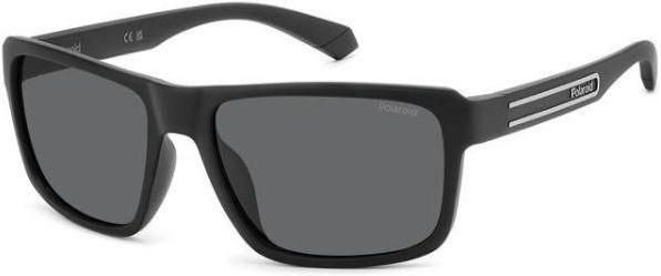 Polaroid Męskie sonnenbrillen | Kształt okularów: Kanciasty, Materiał oprawy: Tworzywo sztuczne, Kolor oprawy: czarny, Kolor szkła: szary pełny kolor, Materiał szkła: Tworzywo sztuczne
