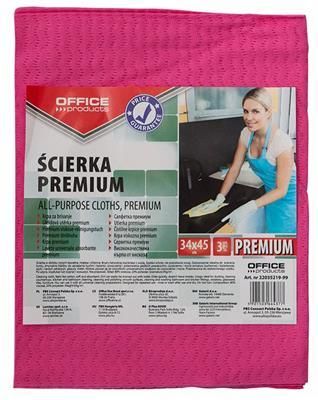 Ścierka premium OFFICE PRODUCTS, wiskoza 80%, gr. 65g/mkg, 34x45cm, 3szt., mix kolorów Tłuszcz