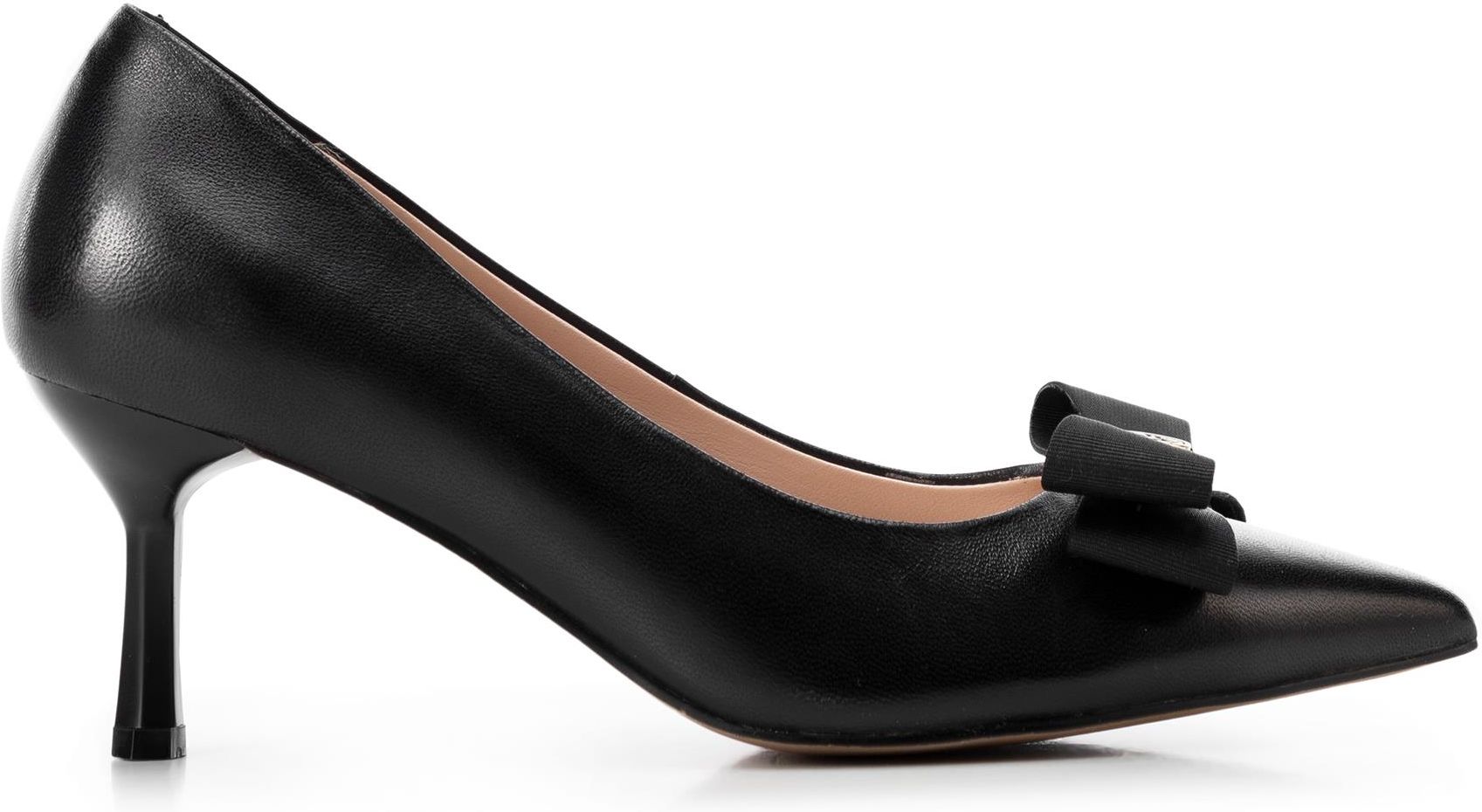 Skórzane czółenka z kokardą czarne Tłuszcz