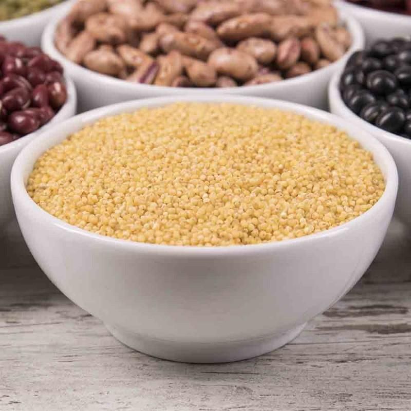 Właściwości Proso, z którego wytwarza się kaszę jaglaną warto wprowadzić do swojej diety. Ma działanie moczopędne, dzięki czemu reguluje pracę nerek, obniża poziom cholesterolu, wykazuje działanie antywirusowe i przeciwgrzybicze, a także kojąco działa na przewód pokarmowy. Polecane jest w profilaktyce nowotworowej, a także pozytywnie wpływa na skórę, włosy i paznokcie. Spożywanie prosa pomoże w zminimalizowaniu przemęczenia, stresu, jak również wpływa na pamięć i koncentrację. Nasiona tej rośliny są bogate w lecytynę, łatwo przyswajalne białko, witaminę E nazywaną „witaminą młodości” oraz witaminy z grupy B (zawierają jej dwa razy więcej niż nasiona z pszenicy lub żyta), które wzmacniają nasz system nerwowy. To także źródło składników mineralnych: manganu, cynku, magnezu (125 ml ugotowanego prosa zaspokaja ok. 10 proc. dziennego zapotrzebowania na magnez), fosforu, żelaza oraz krzemionki. Proso korzystnie wpływa na układ pokarmowy, przynosi ulgę żołądkowi, jelitom oraz śledzionie. Uprażone przed gotowaniem nasiona prosa są pomocne podczas biegunki, a zupa bądź kleik z kaszy jaglanej polecane są przy wymiotach i niestrawności. Proso jest lekkostrawne, a ze względu na brak glutenu nie uczula. Powinno znaleźć się w diecie osób chorych na celiakię. Spożywanie prosa wpływa także na obniżenie poziomu tzw. złego cholesterolu, a także spowalnia przyswajanie węglowodanów, co obniża ryzyko cukrzycy typu 2. Proso posiada właściwości przeciwgrzybicze, stąd też jest najlepszym zbożem dla osób zmagających się z drożdżycą. Dzięki temu, że hamuje rozwój bakterii w ustach, doskonale odświeża oddech. Ponadto proso polecane jest przy przeziębieniach – dzięki niemu pozbędziemy się kataru. Działanie antywirusowe sprawia, że proso wysusza nadmiar wydzieliny stąd też hamuje stany zapalne błon śluzowych. Zimą, kiedy skóra jest przesuszona i skłonna do podrażnień, powinniśmy zwrócić szczególną uwagę na naszą dietę, która pozwoli przywrócić cerze promienny wygląd. Tak działa proso, które nazywane jest „zbożem urody”. Dzięki obecności krzemionki nie tylko korzystnie wpływa na kondycję skóry, ale także wzmacnia włosy i paznokcie. Proso to także źródło antyoksydantów, które chroniąc komórki w organizmie przed działaniem wolnych rodników, hamują proces starzenia się. Ze względu na szereg leczniczych właściwości oraz powszechną dostępność, kasza jaglana zaliczana jest do jednych z najzdrowszych polskich superfoods. Zastosowanie Produkty z prosa znajdują w polskiej kuchni wiele zastosowań. Kaszę jaglaną można podawać do obiadu zamiast ryżu czy ziemniaków. Często faszeruje się nią warzywa tudzież używa jako bazy do zdrowych zapiekanek, a nawet burgerów. Można również dodawać do sałatek, chleba, ciast, budyniu, puddingów czy musli. Płatki jaglane podane z mlekiem z kolei doskonale sprawdzają się jako pożywne i pełne błonnika śniadanie. Jednym ze smaczniejszych sposobów na kaszę jaglaną jest zastępujący wysokokaloryczne desery budyń z dodatkiem aromatycznego kokosa i banana. . Wartość odżywcza w 100g produktu Wartość energetyczna 1498 kJ 358 kcal Tłuszcz w tym kwasy tłuszczowe nasycone 3 g 0 g Węglowodany w tym cukry 75 g 2 g Białko 9 g Sól 0 g Błonnik 2 g