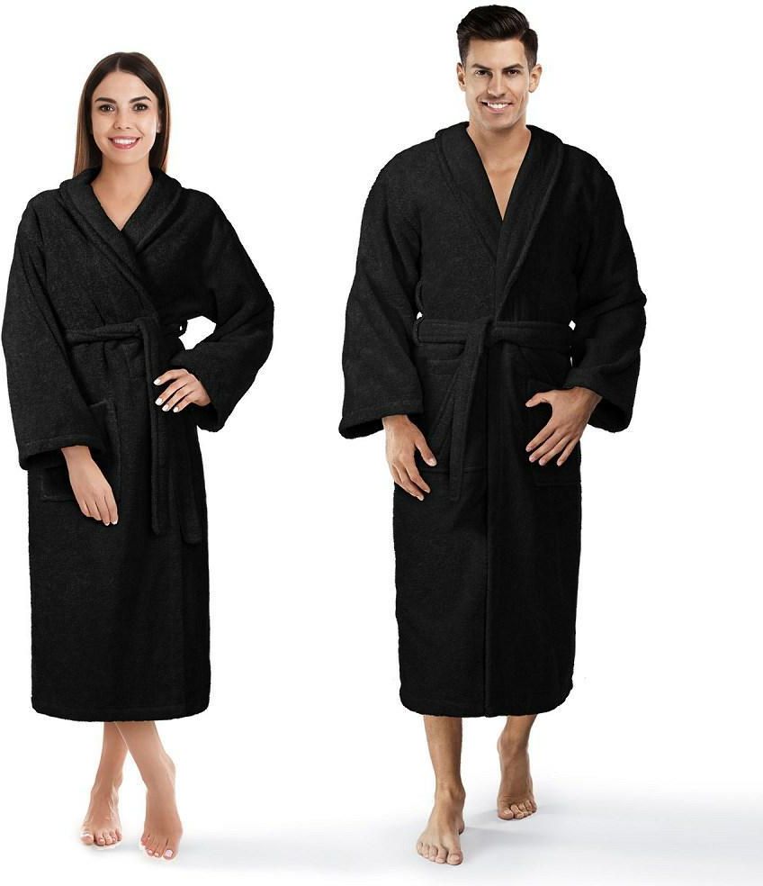 Spod Igły I Nitki Szlafrok frotte Prestiż S/M czarny bawełniany hotelowy 450g/m2 Tłuszcz