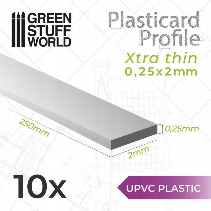 uPVC Plasticard - Profile Xtra-thin 0.25x2 mm - 10 szt. - Bardzo cienkie profile z tworzywa sztucznego wykonane z tworzywa sztucznego PVC (nieplastyfikowany polichlorek winylu) znanego również jako Plastikard. Ogólny termin plasticard odnosi się do gatunku tworzyw sztucznych szeroko stosowanych w …