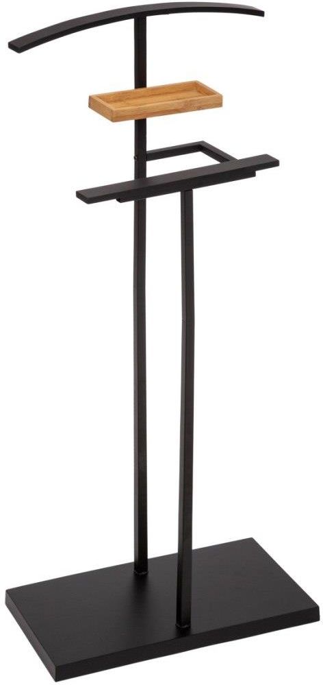 Wieszak na ubrania z półką Wieszak na ubrania z półką to doskonałe rozwiązanie dla osób, które pragną wprowadzić porządek i styl do swojego wnętrza. Jego elegancki, czarny kolor oraz minimalistyczny design sprawiają, że jest on nie tylko funkcjonalny, ale także stanowi stylowy element dekoracyjny. Dzięki swojej prostocie, wpasuje się w różnorodne aranżacje, od nowoczesnych po klasyczne, a jego zastosowanie w przedpokoju, garderobie czy sypialni z pewnością zostanie docenione. Solidna konstrukcja i wymiary Ten wieszak wyróżnia się solidną konstrukcją, wykonaną z wysokiej jakości stali, co gwarantuje jego stabilność i trwałość. O wymiarach 40 cm szerokości, 40 cm wysokości oraz 22 cm głębokości, idealnie sprawdzi się nawet w mniejszych przestrzeniach. Z powodzeniem pomieści różnorodne ubrania, w tym garnitury, które wymagają szczególnej troski. Niewielkie wymiary sprawiają, że nie zajmuje dużo miejsca, co czyni go praktycznym rozwiązaniem dla każdego domu. Czarna kolorystyka dodaje mu charakteru, a jednocześnie sprawia, że jest łatwy do wkomponowania w różne style aranżacyjne. Wieszak doskonale łączy nowoczesny wygląd z funkcjonalnością, co czyni go atrakcyjnym wyborem dla osób ceniących sobie estetykę oraz praktyczność w codziennym użytkowaniu. Dodatkowo, półka wykonana z bambusa w tej samej kolorystyce, co metalowa konstrukcja, podkreśla jej estetykę i zapewnia harmonię w całym projekcie. Funkcjonalność i zalety Wieszak na ubrania z półką posiada również bambusową półkę, która świetnie komponuje się z metalową podstawą. Można ją wykorzystać do przechowywania różnych drobiazgów, takich jak zegarki, spinki do mankietów czy klucze. To znakomite miejsce na małe akcesoria, które łatwo jest zgubić, a przy tym wprowadza dodatkową organizację w domowej przestrzeni. Czarna półka zwiększa estetykę całego produktu i staje się praktycznym dodatkiem do codziennego użytkowania. Wieszak na ubrania z półką oferuje szereg zalet, które czynią go interesującym wyborem dla każdego. W celu lepszego zrozumienia korzyści wynikających z jego posiadania, warto zwrócić uwagę na następujące cechy: Stylowy design: elegancka, czarna kolorystyka i minimalistyczny styl pasują do każdego wnętrza, Solidna konstrukcja: wykonany z wytrzymałej stali, co zapewnia stabilność i długoletnie użytkowanie, Bambusowa półka: idealna do przechowywania drobiazgów, co zwiększa funkcjonalność wieszaka, Kompaktowe wymiary: z łatwością zmieści się w ograniczonej przestrzeni, co czyni go praktycznym rozwiązaniem, Uniwersalne zastosowanie: sprawdzi się w przedpokoju, garderobie i sypialni, dostosowując się do Twoich potrzeb, Idealny prezent: doskonały dla mężczyzn, którzy cenią elegancję i porządek w swoim otoczeniu. Praktyczność i estetyka Wieszak na ubrania z półką to funkcjonalny i stylowy element, który może wzbogacić przestrzeń użytkową. Jego solidna konstrukcja oraz przemyślane wymiary sprawiają, że odpowiada różnorodnym wymaganiom użytkowników, niezależnie od stylu życia. Praktyczność, jaką oferuje czarna kolorystyka oraz przestrzeń do przechowywania, czynią ten produkt odpowiednim rozwiązaniem dla osób poszukujących estetyki i funkcjonalności w jednym.