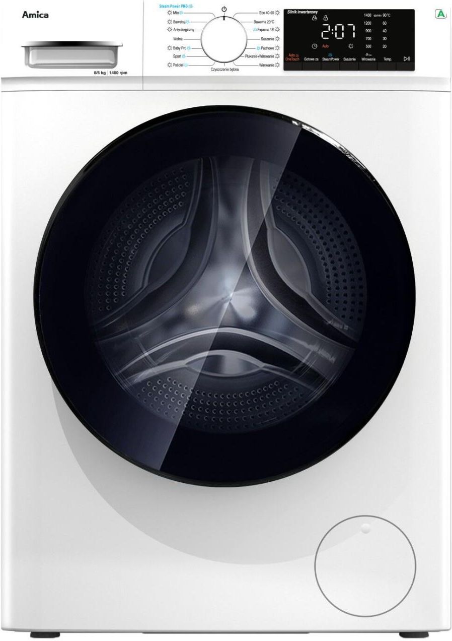 Pralko-suszarka Amica A1WDS8514DLiStH 8/5kg SteamPower Pro Slim Pralko-suszarka Amica A1WDS8514DLiStH o ładowności 8 kg prania i 5 kg suszenia to kompaktowe urządzenie typu Slim, które doskonale sprawdzi się w mniejszych przestrzeniach. Dzięki technologii SteamPower Pro usuwa alergeny i odświeża tkaniny parą, zapewniając higieniczną czystość i miękkość ubrań. NAJWAŻNIEJSZE PARAMETRY Pojemność wsadu - pranie (kg): 8 Pojemność wsadu - suszenie (kg): 5 Automatyka wagowa Regulacja wirowania: 0-500-700-900-1200-1400 Regulacja temperatury: cold-20-30-40-60-85 Sygnalizacja dźwiękowa Rodzaj wyświetlacza: LED Ilość programów: 15 Pojemność bębna: 54 l Wysokość: 84,7 cm Szerokość: 60 cm Głębokość: 45,7 cm LogicDrive 3.0 Innowacyjny bezszczotkowy silnik LogicDrive 3.0. dzięki zastosowaniu najnowszej technologii, pozwala na osiągnięcie bardzo dobrej efektywności prania nawet przy krókich programach. Dodatkowo silnik gwarantuje osiagnięcie najwyższej klasy energetycznej przyczyniając się tym samym do znacznego obniżenia zużycia energii, zapewnia dłuższą żywotność urządzenia i cichą pracę. SteamPower Pro Para generowana na początku cyklu prania gwarantuje perfekcyjnie czyste, w pełni zdezynfekowane ubrania. Wytwarzana w trakcie prania para w pralko-suszarkach zabija wirusy i bakterie, dzięki czemu odzież, pościele i inne tkaniny są sterylnie czyste. Para wnika też we włókna tkaniny, rozluźnia je redukując zagniecenia, a prasowanie staje się łatwiejsze. Twoje ubrania po wyjęciu z pralko-suszarki będą higienicznie czyste, miękkie i pachnące. Program Express 15' Chciałbyś odświeżyć ubrania na nadchodzący sezon lub szybko przeprać lekko zabrudzoną odzież? Z programem Express 15' w zaledwie 15 minut pozbędziesz się nieprzyjemnych zapachów, kurzu i lekkich zabrudzeń. Program uwzględnia wszystkie trzy etapy prania: zasadnicze, płukanie, wirowanie. To praktyczne rozwiązanie stworzone z myślą o oszczędności czasu i energii. W wybranych modelach w celu wysuszenia ubrań masz możliwość zastosowania funkcji suszenie. Program Antyalergiczny Alergie to coraz częstszy problem zarówno u dzieci jak i dorosłych. Specjalny algorytm programu ze zwiększoną intensywnością prania, czterema płukaniami w podgrzanej wodzie usuwa praktycznie wszystkie alergeny i drobnoustroje z pranej odzieży. Wszystko w trosce o zdrowie i delikatną skórę Twoich najbliższych. Program Pościel Czysta pościel to lepszy i zdrowszy sen. Program do pościeli zapewnia dodatkowe płukanie w ciepłej wodzie, co podnosi skuteczność prania. Ponadto możesz skorzystać z funkcji pary, która zdezynfekuje wsad, a także dodatkowego płukania czy oszczędnej funkcji EcoWash. Program Puchowe Program stworzony z myślą o bezpiecznym praniu ulubionych puchowych kurtek, ubrań i akcesoriów z gęsim puchem. Jest delikatny dla takiego wypełnienia, a zarazem skutecznie radzi sobie z zabrudzeniami. Wystarczy włożyć do bębna odzież nadającą się do prania w pralce (maksymalny załadunek to 2 kg), dodać odpowiedni detergent w płynie i wybrać ten program. Po upływie 1:43 h pranie będzie czyste, pachnące i świeże, a puch zachowa swoje właściwości. W celu wysuszenia ubrań masz możliwość zastosowania funkcji suszenie. Klasa energetyczna A (dla cyklu prania) Pralko-suszarki w klasie energetycznej A zużywają o 42% mniej energii niż pralko-suszarki w klasie E, co oznacza oszczędność energii na poziomie 93 cykli rocznie. Slim Pralko-suszarka idealna do małej łazienki. Konstrukcja bębna pozwala na duży załadunek przy głębokości pralko-suszarki 47 cm. Czyszczenie bębna Program, który pozwala na wypłukanie zabrudzeń i usunięcie grzybów, pleśni, alergenów i innych drobnoustrojów rozwijających się we wnętrzu pralko-suszarki podczas użytkowania. Program BabyPro Podwyższona temperatura programu oraz dwa płukania zapewniają pozbycie się zabrudzeń i resztek detergentów. W trosce o czystość i bezpieczeństwo najmłodszych. Do programu istnieje możliwość dodania funkcji suszenie. Program Sport Szczególna ochrona i odświeżenie delikatnej odzieży sportowej i rekreacyjnej z mikrofibry Gotowe za Przy opcji Gotowe za użytkownik wybiera czas zakończenia programu, a pralka sama rozpocznie pracę tak żeby się zmieścić w zadanym czasie. Wyświetlacz LED Czytelny i przyjazny sposób wyświetlania informacji o parametrach prania. Program Mix Uniwersalny program prania o bardzo elastycznych nastawach. Możesz regulować temperaturę, prędkość wirowania oraz liczbę płukań. Do programu istnieje możliwość dodania funkcji suszenia. Program Suszenie Program Suszenie pozwala na skuteczne wysuszenie wilgotnych tkanin, które wcześniej były prane ręcznie. Program Bawełna Program do prania średnio lub mocno zabrudzonych bawełnianych koszulek, ręczników i pościeli. W celu wysuszenia ubrań masz możliwość zastosowania funkcji suszenie. Program Bawełna 20°C Program do odświeżania odzieży bawełnianej. Program Wełna Program Wełna skutecznie pierze i chroni wełniane włókna przed filcowaniem i odkształceniem. Dzięki niemu Twoje ulubione swetry pozostaną idealnie czyste, miękkie i puszyste. Program Eco 40-60°C Program automatycznie dobiera czas, temperaturę oraz zużycie wody do załadunku pralki. Nadaje się dośrednio zabrudzonych tkanin bawełnianych. W wybranych modelach istnieje możliwość dodania do programu funkcji suszena. Regulacja temperatury prania Możliwość dostosowania temperatury do typu pranych tkanin Regulacja wirowania Funkcja pozwala na regulację wirowania lub jego całkowite wyłączenie w trosce o delikatne tkaniny. ChildLock Funkcja wyjątkowo przydatna dla rodzin z dziećmi, pozwalająca zablokować przyciski funkcyjne. Dzięki temu unikniesz przypadkowej zmiany ustawień lub wyłączenia pralko-suszarki. Sygnalizacja dźwiękowa Pralko-suszarka potwierdza sygnałe