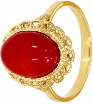 Caspol.Eu Złoty Pierścionek Wiktoriański z Koralem Biżuteria Damska Złoto 585 PR.00977 Tomaszów Lubelski