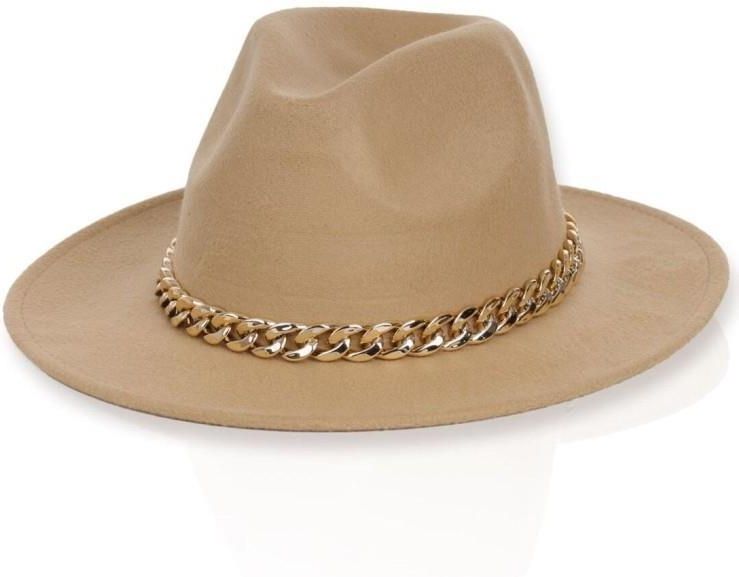 Kapelusz filcowy damski beżowy ze złotym łańcuszkiem KP-01A Tomaszów Lubelski