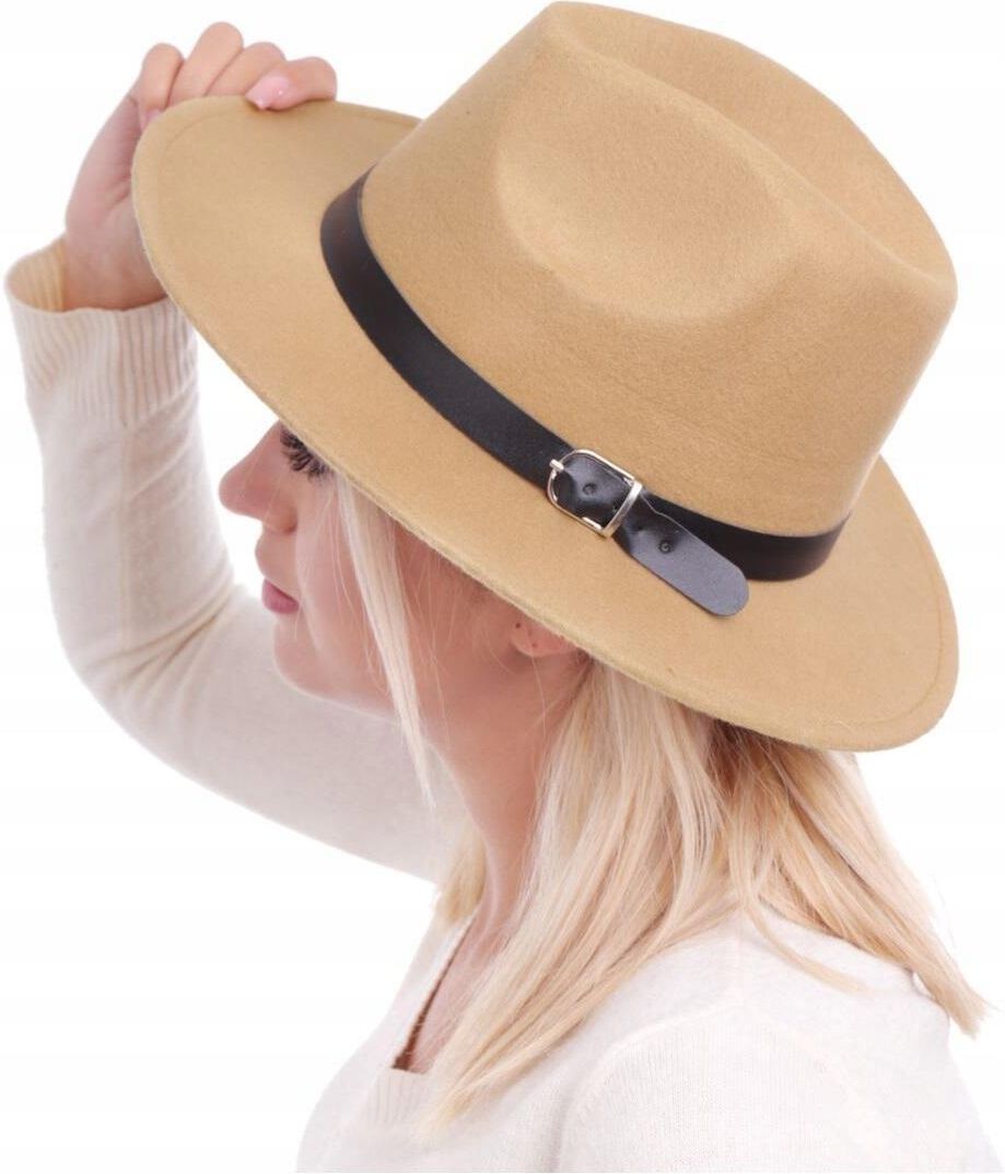 Kapelusz Filcowy Damski Z Paskiem Beżowy Tomaszów Lubelski