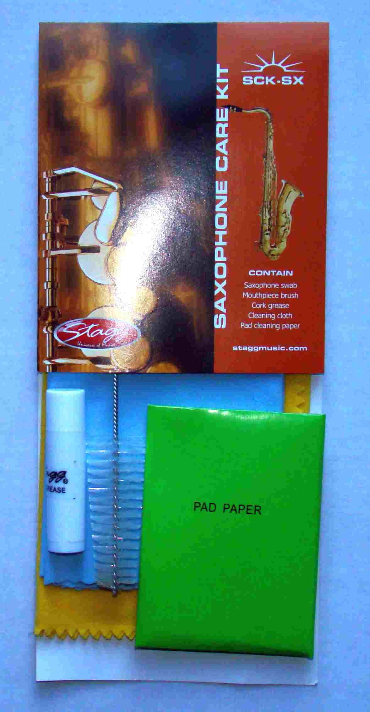 Zestaw zawiera:TamponSzczoteczka do ustnikaPasta do korkaŚciereczka do czyszczenia powierzchniBibułki czyszczące Zestaw do konserwacji saksofonu. Zawiera wycieraczkę, szczoteczkę z gąbki, ściereczkę do czyszczenia powierzchni, pastę do korka i podkładkę z papieru do czyszczenia.