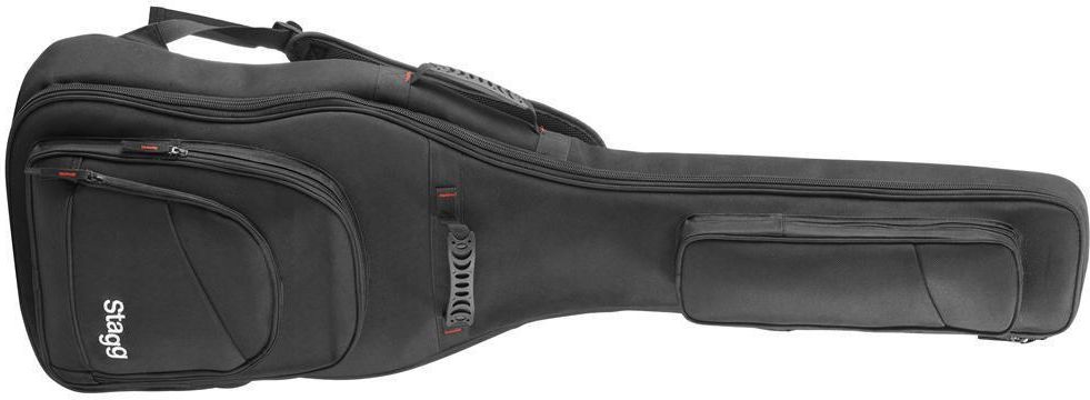 Specyfikacja Typ: Pokrowiec na gitarę basową Materiał: Mocny nylon 1680 D Wyściółka: 10mm pianka, 2,5mm elastyczna guma przeciwuderzeniowa Podszewka: Nylon Uchwyty: 2 podszywane regulowane szelki, 2 wzmacniane uchwyty Dodatki: Kieszeń na efekty gitarowe, 1 kieszeń na mniejsze akcesoria, 1 kieszeń na osobiste wyposażenie, 1 boczna kieszonka. Grubość: 15mm Kolor: Czarny (z zewnątrz i wewnątrz)