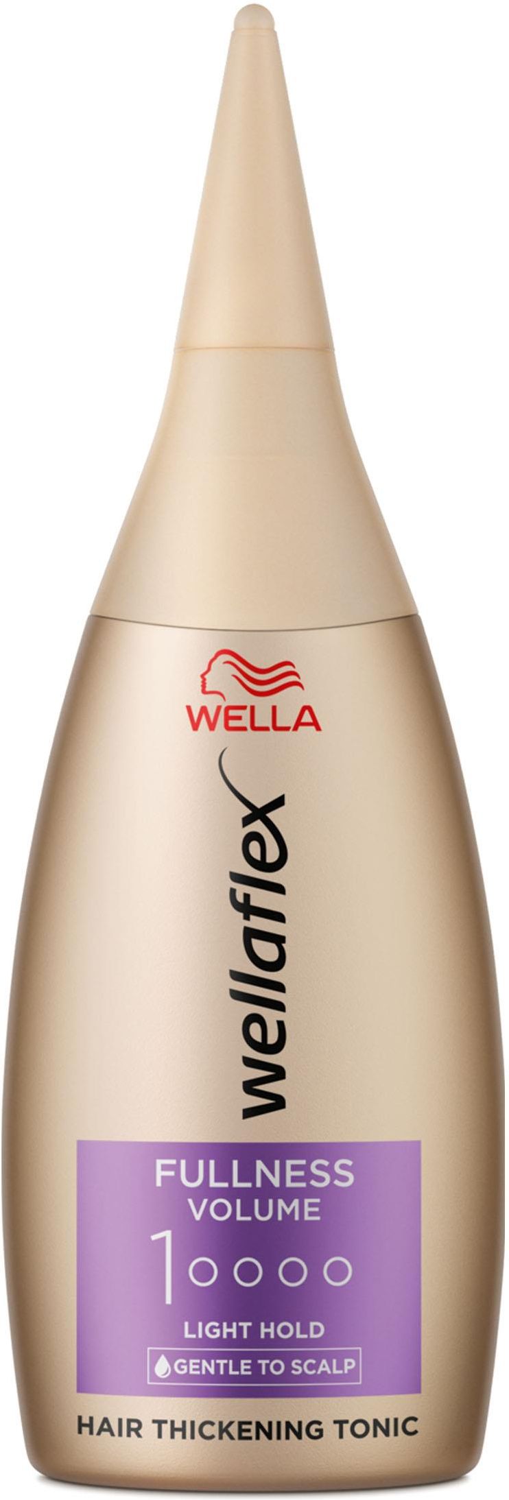 Grubsze, pełne objętości włosy bez lepkich pozostałości? To musi być Wellaflex Fullness Tonic Volume! Ten tonik zwiększający objętość jest naszym najlżejszym produktem – jest delikatny dla skóry głowy, przetestowany dermatologicznie i pogrubia bardzo nawet cienkie włosy, nie obciążając ich. Wegańska* formuła unosi cienkie włosy bezpośrednio u nasady, pomagając uzyskać obszerny, ale naturalny wygląd, który utrzymuje się przez wiele godzin, zapewniając jednocześnie ochronę przed promieniowaniem UV. Wreszcie Wellflex Fullness Volume Tonic jest pakowany w 39% z materiałów pochodzących z recyklingu. Aby uzyskać więcej możliwości stylizacji włosów i jeszcze większą objętość, wypróbuj pełną gamę produktów Wellaflex Fullness Volume. Odkryj naszą wyjątkowo mocną piankę, która zapewnia długotrwałe utrwalenie i pomaga uzyskać pełniejsze i grubsze włosy oraz utrwal fryzurę za pomocą naszego ultramocnego lakieru do włosów, który nadaje płaskim włosom większą objętość i wyjątkowo mocne utrwalenie, które trwa do 48 godzin. Wykorzystuj każdą chwilę z pełną pewnością siebie i zadbaj o to, aby Twój look był zawsze na czasie, dzięki szerokiej gamie produktów stylizacyjnych Wella dla kobiet. * Formuła bez składników pochodzenia zwierzęcego. · Wellaflex Fullness Volume Tonic, produkt zagęszczający włosy do skóry głowy · Łagodna dla skóry głowy, wegańska*, testowana dermatologicznie formuła zapewniająca objętość i lifting · Lekki tonik zagęszczający włosy, zapewniający pełniejszy wygląd włosów bez lepkich pozostałości · Przed użyciem dobrze wstrząsnąć. Wylej niewielką ilość na dłoń. Rozprowadź na wilgotnych włosach i wysusz suszarką lub pozostaw do naturalnego wyschnięcia · Zapoznaj się z całą kolekcją Wellaflex Fullness Volume, aby uzyskać bardziej obszerny i trwały wygląd
