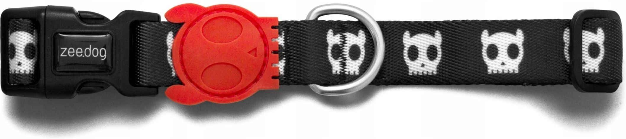 Obroża marki ZEE DOG wykonana z poliestru. Wyposażone została w solidną klamrę z 4-punktowym systemem blokowania dla dodatkowego bezpieczeństwa. Wyraźne logo czaszki to dodatkowa ozdoba, która pełni również funkcję chroniącą szwy znajdujące się w jej wnętrzu.