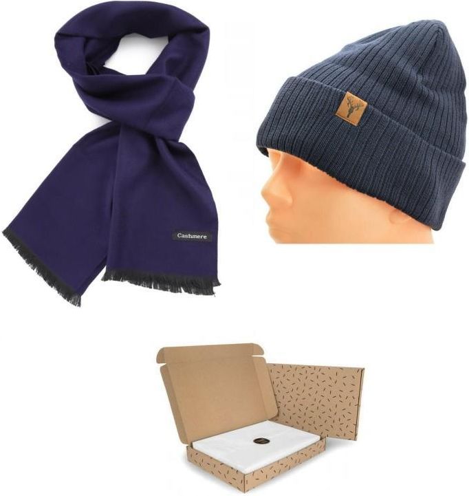 ZESTAW PREZENTOWY dla Mężczyzny - Czapka Zimowa + Szalik Cashmere + eleganckie Pudełko Tomaszów Lubelski