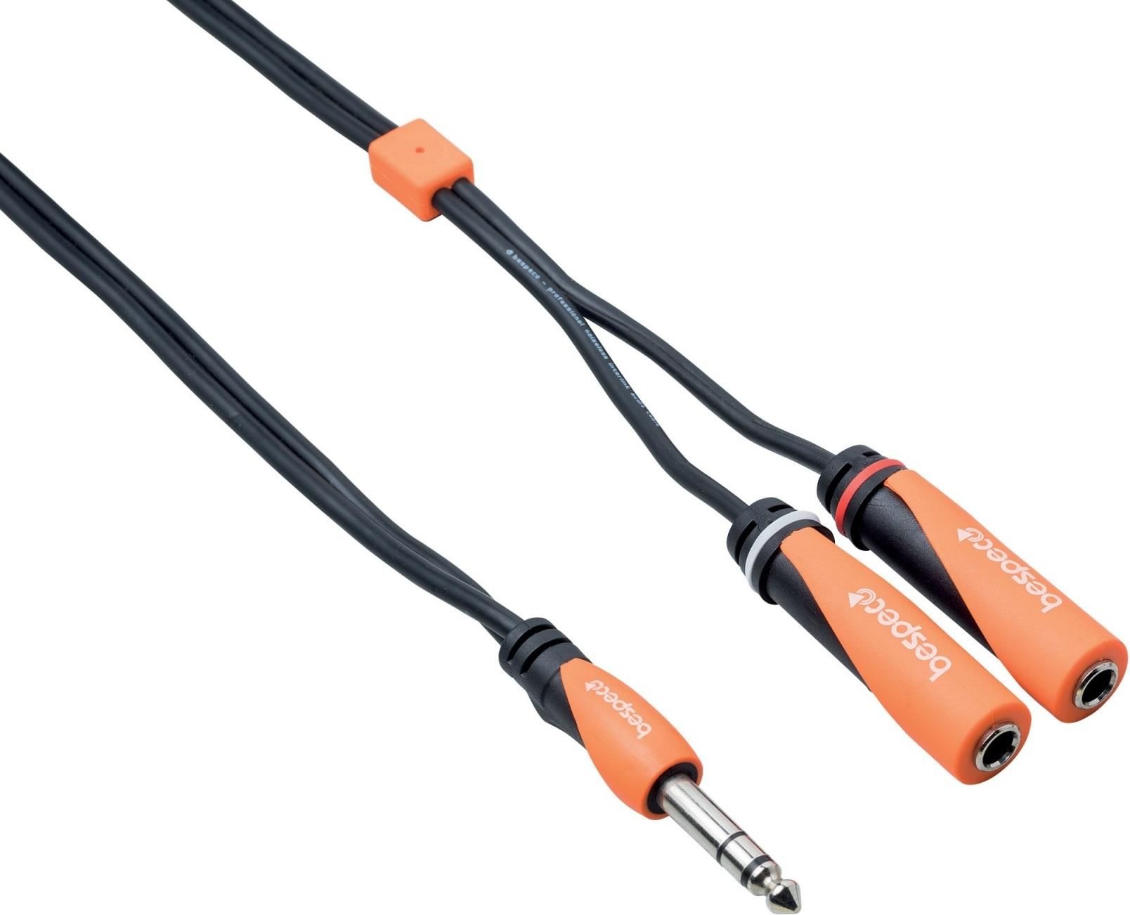 Kabel Interlinkowy stereo Ø 6,3 mm / 2 x jack stereo Ø 6,3 mm Długość: 0,30 m Średnica kabla: 6 mm Opakowanie: blister Kolor: czarny/pomarańczowy