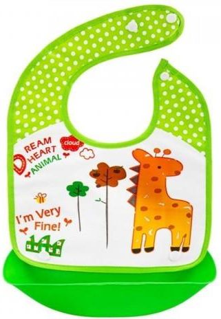 Bocioland Śliniak z kieszonką Żyrafa – 1 szt. Wskazania: Bocioland Śliniak z kieszonką Żyrafa to produkt dla niemowląt i małych dzieci wskazany do stosowania podczas karmienia oraz nauki samodzielnego jedzenia. Właściwości: Miękki, przyjemny w dotyku wielorazowy śliniak ceratowy EVA z odpinaną silikonową kieszonką, która zatrzymuje resztki pokarmu. Chroni ubrania przed zabrudzeniem. Posiada dwustopniowe zapięcie na zatrzaski, które ułatwiają dopasowanie śliniaka do szyi dziecka. Wesołe, przyjemne dla dziecięcego oka wzory i kolory. Łatwy do utrzymania w czystości – ceratka i odpinana kieszonka, które można myć wodą z mydłem. Stosowanie: Po jedzeniu umyć śliniaczek w ciepłej wodzie z mydłem dla dzieci. Opakowanie: 1 sztuka