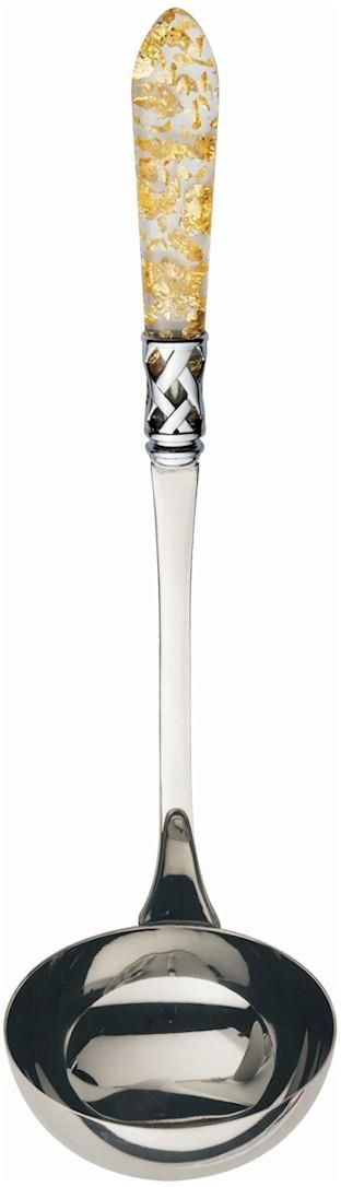 BUGATTI Aladdin Gold Soup 28,5 cm - chochla / łyżka wazowa stalowa Specyfikacja techniczna Id produktu: 94593 Kolor: stal nierdzewna Długość: 28,5 cm Waga: 0,23 kg Symbol producenta: alc1g-04210 Seria: bugatti aladdin gold Materiał: stal nierdzewna -------------------------------------------- Istotne informacje Złoto 24 karatowe w rękojeści akrylowej -------------------------------------------- Możliwość stosowania