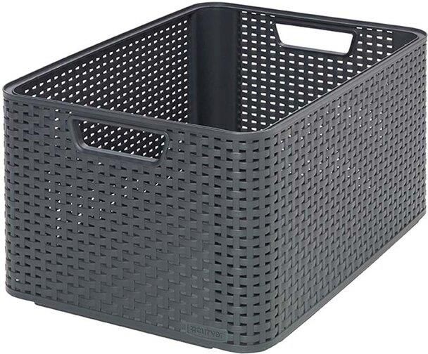 Koszyk Rattan Style L szary, renomowanej firmy Curver. Jest to funkcjonalny, stylowy koszyk, charakteryzujący się nowoczesnym wzornictwem i elegancją. Idealnie nadaje się do przechowywania różnych przedmiotów, jednocześnie stanowiąc estetyczny element wyposażenia salonu, sypialni, garderoby czy łazienki. Koszyk Rattan Styl to świetna alternatywa dla koszyków wiklinowych czy rattanowych. Jego dodatkową zaletą jest to, że nie naraża na uszkodzenia oraz zabrudzenia przechowywanych w nim przedmiotów.Koszyk Rattan Style L szary, o wymiarach: 436 mm x 326 mm x 230 mm.