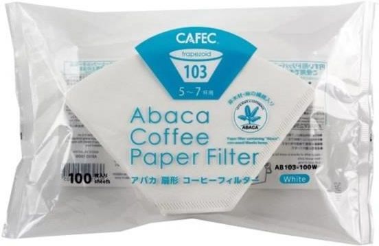 Filtr papierowy trapezoidalny Cafec Abaca, biały, cup 5-7, 100szt. 100 sztuk papierowych filtrów marki CAFEC, przeznaczonych do trapezoidalnych dripów do kawy. Opakowanie filtrów do kawy najwyższej jakości, stworzonych i wyprodukowanych z japońskiego papieru oraz włókien ABACA - bananowca …