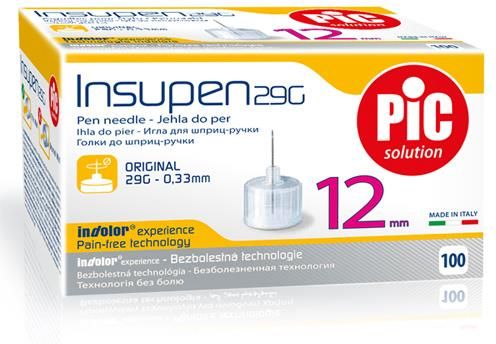 Insupen igły do penów 29G 12 mm 100 sztuk Wysokiej jakości igły, które zmniejszają dyskomfort podczas zastrzyków. Przeznaczone do stosowania wraz z urządzeniami do wstrzykiwania (penami) do podawania leków. Igły są jednorazowe, jałowe, nietoksyczne, nie zawierają pirogenów ani lateksu. Jedno opakowanie zawiera 100 igieł. Igły Insupen są potrójnie zaostrzone i szlifowane w trzech sekcjach, co zmniejsza tarcie podczas robienia zastrzyków. Dodatkowo w celu ułatwienia penetracji skóry podczas nakłucia pokryto je silikonem. Natomiast cienki profil zmniejsza odczucie dyskomfortu. Końcówka igły została poddana specjalnej obróbce, dzięki czemu przebija pojemnik z insuliną w sposób, który zapobiega zanieczyszczeniu leku. Parametry techniczne jałowe, niepirogenne, nietoksyczne, bez lateksu technologia cienkich ścianek: jeszcze większa średnica wewnętrzna przy zachowaniu takiej samej średnicy zewnętrznej pozwala na łatwiejszy i szybszy przepływ insuliny i w efekcie skraca czas wstrzyknięcia trzykrotne ostrzenie zapewnia łatwiejszą penetrację i zmniejsza dyskomfort pacjenta pokrycie igły silikonem zmniejsza opór igły podczas wstrzykiwania wyprodukowane w technologii anti-coring – końcówka igły od strony kartridża (naboju z insuliną) wyprofilowana w sposób zapobiegający fragmentacji membrany (zapobieganie wpadaniu fragmentów, opiłków do insuliny) wyrób jednorazowego użytku – do stosowania jeden raz, przez jednego użytkownika Wyrób medyczny - posiada oznakowanie CE Posiada deklarację zgodności UE Zawiera instrukcję obsługi oraz interfejs w języku polskim Zawiera etykietę w języku polskim