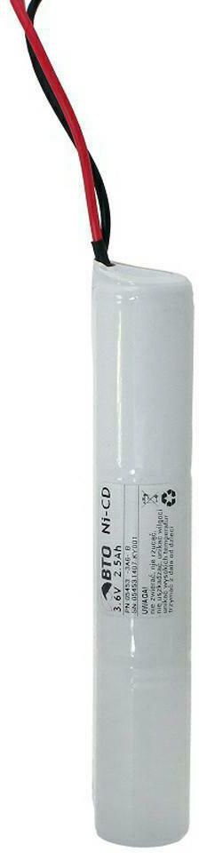Pakiet akumulatorów do oświetlenia awaryjnego Ni-CD 250CKT 3A6-B 3S1P Pakiet zbudowany z ogniw KSY 250CKT 2500mAh Ni-CD (przed zakupem sprawdź dostępność ogniw). Stosowany najczęściej w urządzeniach do zasilania awaryjnego/oświetlenia awaryjnego, pasujący do opraw firmy Intelight. Pakiet akumulatorów posiada wyprowadzenia w postaci przewodów o przekroju dobranym względem maksymalnej wydajności prądowej pakietu. Na wyraźne życzenie Klienta możemy zastosować inny przekrój przewodów oraz ich długości (standardowo 10 cm), lecz na odpowiedzialność zamawiającego. W razie wątpliwości, zachęcamy do wysłania zapytania do naszego działu sprzedaży: e-mail: office@bto.pl lub tel. 42 672 42 02. Uwaga: Sztuczny stan! Pakiety wykonywane są na bieżąco pod zamówienie klienta. Czas oczekiwania wynosi od 5 do 10 dni roboczych. Przed zakupem sprawdź dostępność ogniw i komponentów. Dane techniczne: Napięcie nominalne pakietu: 3.6V Zakres napięć pakietu: 2.8V do 4.2V Pojemność nominalna pakietu: 2500mAh Konfiguracja elektryczna: 3S1P Technologia: niklowo-kadmowa (Ni-CD) Wyprowadzenia: przewody o długości 300mm Standardowy prąd ładowania pakietu: 250mA Wymiary: wysokość: 152mm; średnica: 25,5mm* Waga: ~220g * podane wymiary są wymiarami przybliżonymi. Wymiary ostateczne (lub rzeczywiste) pakietu mogą nieznacznie odbiegać od wymiarów podanych. Wynika to z różnic wymiarowych między poszczególnymi produktami (ogniwami), oraz koniecznością montażu elementów dodatkowych. Regulacje transportowe Pakiet nie posiada testów UN38.3 Podobny pakiet, ale z innymi ogniwami możesz też zaprojektować samodzielnie. Taką możliwość daje zupełnie nowe narzędzie w naszym sklepie. Już teraz zbuduj samodzielnie indywidualny pakiet, przy pomocy "KONFIGURATORA PAKIETÓW BTO".