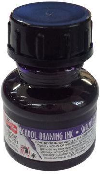 Koh-i-Noor Drawing Ink tusz kreślarski kolorowy objętość: po 20 g każda buteleczka stosuje się je do piór i pędzli cechują się żywymi kolorami i odpornymi na światło bardzo dobrze i trwale łączą się z podłożem tusz czarny odznacza się 0 współczynnikiem transparentności i 100% kryciem podłoża przeznaczone do celów kreślarskich, artystycznych i ozdobnych opakowanie: buteleczka kolor: fioletowy