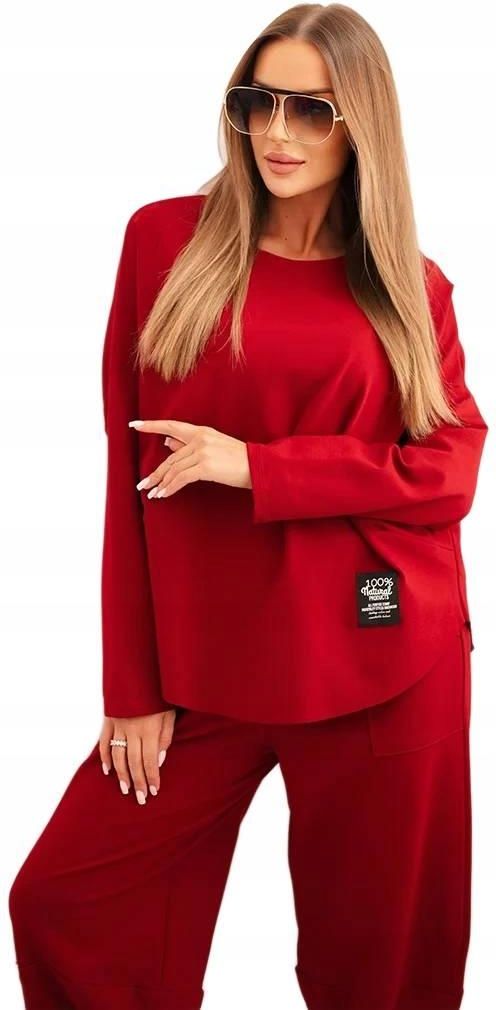 Komplet Punto Milano Winter bluza + spodnie bordowy Kesi Włoski Komplet Punto Milano Winter, składający się z bluzy i spodni, to idealny wybór na chłodniejsze dni, łączący w sobie styl i komfort. Wykonany z wysokiej jakości materiału Punto Milano, zapewnia ciepło i wygodę noszenia przez cały dzień. Bluza charakteryzuje się klasycznym krojem, który świetnie komponuje się z różnymi stylizacjami, a spodnie zapewniają doskonałe dopasowanie i swobodę ruchów. Ten komplet jest doskonałym rozwiązaniem na casualowe wyjścia, relaksujące weekendy czy spotkania ze znajomymi, oferując elegancję i komfort w jednym. Rozmiar jest uniwersalny i pasuje dla kobiet noszących rozmiar S, M lub L. PRODUKCJA WŁOSKA Skład materiału: 65% Wiskoza, 30% Nylon, 5% Elastan. Wymiary podane poniżej mierzone są na płasko +/- 1 cm W celu uzyskania wymiaru obwodu, szerokość mnożymy razy 2 Wymiary Bluzy: Szerokość pod pachami: 70 cm Długość całkowita: 64 cm Długość rękawa od pachy: 35 cm Wymiary Spodni: Szerokość w pasie: 33 cm/po rozciągnięciu: 53 cm Długość całkowita: 94 cm Szerokość nogawki od kroku: 60 cm Szerokość w biodrach: 55 cm Przepis prania: Przed czyszczeniem ubrania zawsze zapoznaj się z przepisem prania znajdującym się na metce wewnętrznej. Pierz w temperaturze max 30°C, Prasuj w temperaturze max 110°C, Nie można wybielać i chlorować, Czyścić na sucho w benzynie, Nie suszyć w suszarce. Szerokość pod pachami: 71 cm Długość bluzy: 64 cm Długość rękawa od pachy: 35 cm Długość od kroku: 60 cm Długość całkowita spodni: 94 cm Szerokość w biodrach: 55 cm Szerokość w pasie: 33 cm, 53 cm Nowość: Nowość Kolor: Bordowy Kod producenta: 5907302141835