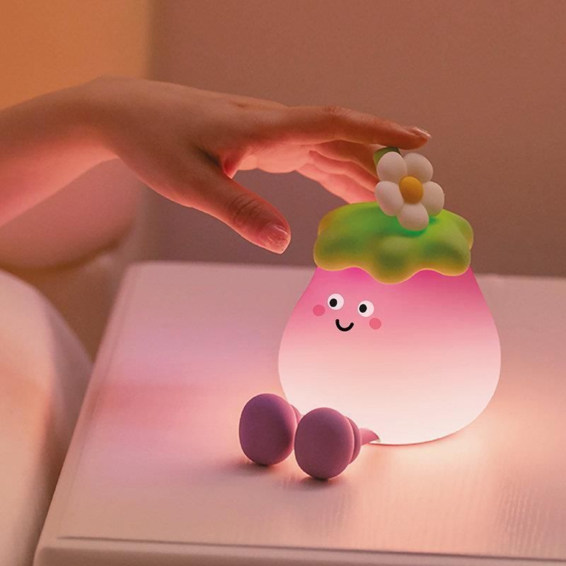 Lampka nocna marki Innogio w kształcie bakłażana wnosi do pokoju dziecka odrobinę koloru, zabawy i przytulnego światła. Wykonana z miękkiego, elastycznego silikonu bez BPA, jest całkowicie bezpieczna i przyjemna w dotyku - idealna do tulenia i zabawy.