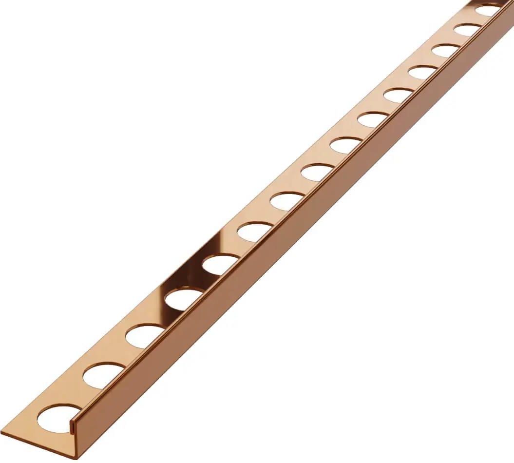 Listwy L ze stali nierdzewnej dekoracyjne - kolor miedziany polerowany Profile L to idealne listwy wykończeniowe. Ich zaletą jest również to, że są termoodporne i nierdzewne. To idealne dekory, które są w stanie połączyć ze sobą różne powierzchnie. Listwa metalowa L sprawdzi się nawet do delikatnego oklejania łuków. Wykonane z trwałego materiału, który doskonale posłuży nam przez wiele długich lat i przez cały ten czas będzie prezentował się doskonale. Niezwykle prosty montaż sprawia, że profile do płytek instaluje się bardzo szybko, zalecane jest, aby w tym celu użyć specjalnie przystosowanego do tego kleju montażowego lub postarać się, aby wykończenie płytek zostało wtopione w klej do glazury. Listwa metalowa sprawdzi się idealnie zarówno w pomieszczeniach, jak i na zewnątrz. Dlaczego warto wybrać profile licowe jako listwy wykończeniowe? Materiał, z jakiego wykonane są profile do płytek, uznawany jest za niezwykle wytrzymały zarówno na działanie wody, jak i panującej w pomieszczeniu wilgoci. Możliwy jest wybór takiej grubości, dzięki której idealnie zamaskujemy nierówną lub niedoskonałą powierzchnię. Prezentowane listwy wykończeniowe do płytek i innych materiałów mogą tworzyć zakończenia cokołów, ramki oraz być wykorzystywane jako dekor. Listwa dekoracyjna L – zalety - stal nierdzewna odporna na działanie wody. - pierwszy gatunek, - posiada właściwości termoodporne. - łatwy montaż – wystarczy wykorzystać odpowiedni klej do montażu, Dostępne wymiary: - wysokość 10,5 mm, 12,5 mm - długość 270 cm Materiał: stal barwiona hutniczo na kolor miedziany.
