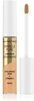 Korektor do twarzy Miracle Pure od Max Factor jest inspirowany kosmetykami do pielęgnacji skóry. Badania kliniczne potwierdzają, że jego stosowanie poprawia wygląd cery. Lekka formuła korektora zawiera kwas hialuronowy, witaminę C i peptydy Produkt zapewnia średnie krycie o naturalnym wyglądzie i doskonale sprawdza się na skórze twarzy i pod oczami Gwarantuje całodzienne krycie bez uwydatniania zmarszczek – rozświetlając i rozjaśniając cerę oraz zapewniając jej 24-godzinne nawilżenie. Testowany klinicznie i dermatologicznie, odpowiedni dla skóry wrażliwej. Z wyjątkowo miękkim, elastycznym i precyzyjnym aplikatorem. Dostępny w 3 odcieniach i stworzony z myślą o idealnym współgraniu z podkładem Max Factor Miracle Pure. Aqua (Water/Eau), Dicaprylyl Carbonate, Dicaprylyl Ether, Aluminium Starch Octenylsuccinate, Glycerin, Trimethylsiloxysilicate, Sodium Chloride, Silica, Tri(Polyglyceryl-3/lauryl) Hydrogenated Trilinoleate, Stearalkonium Bentonite, Cetyl PEG/PPG-10/1 Dimethicone, Mica, Propylene Carbonate, Tocopherol, Panthenol, Triethoxycaprylylsilane, Sodium Benzoate, Chlorphenesin, Glyceryl Polymethacrylate, PEG-8 Methicone, Ascorbyl Palmitate, Sodium Hyaluronate, Pantolactone, Palmitoyl, Hexapeptide-12, Pentaerythrityl Tetra-di-t-butyl Hydroxyhydrocinnamate, [May Contain/peut Contenir/+/, Titanium Dioxide (CI 77891), Iron Oxides (CI 77491, CI 77492, Ci 77499)] 7,9 ml